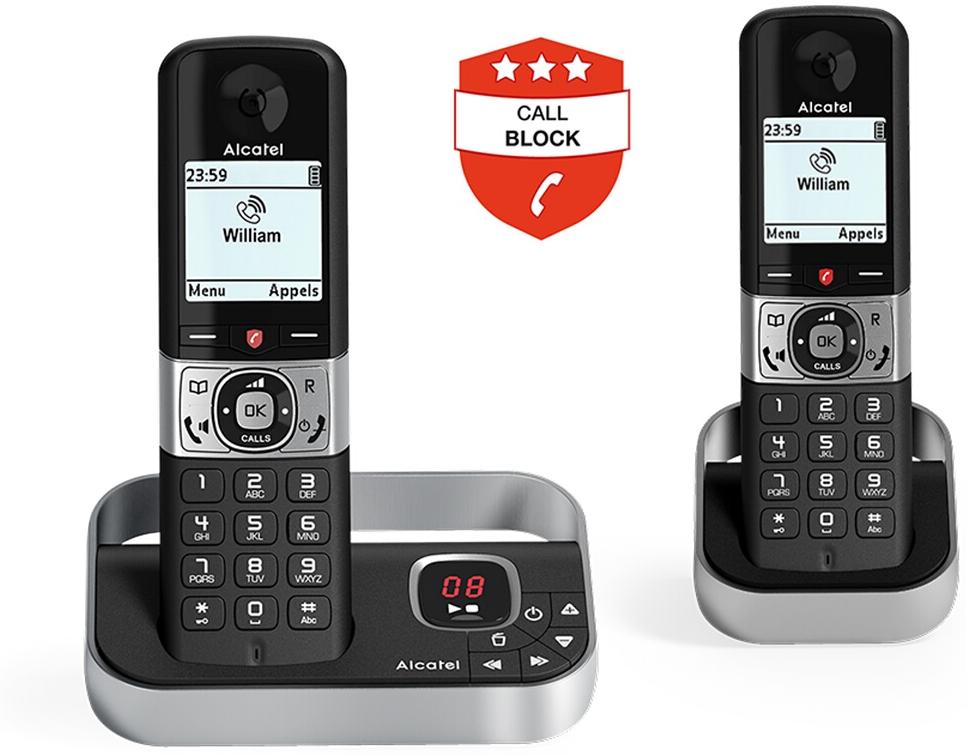 Le téléphone sans fil Alcatel F890 Voice Duo Pack est un appareil pratique doté de fonctionnalités avancées pour une communication efficace. Ce pack comprend deux combinés pour une utilisation polyvalente. Le F890 est équipé d'une fonction de blocage des appels publicitaires, avec 4 modes manuels et 1 mode automatique, permettant de bloquer jusqu'à 1000 appels indésirables.