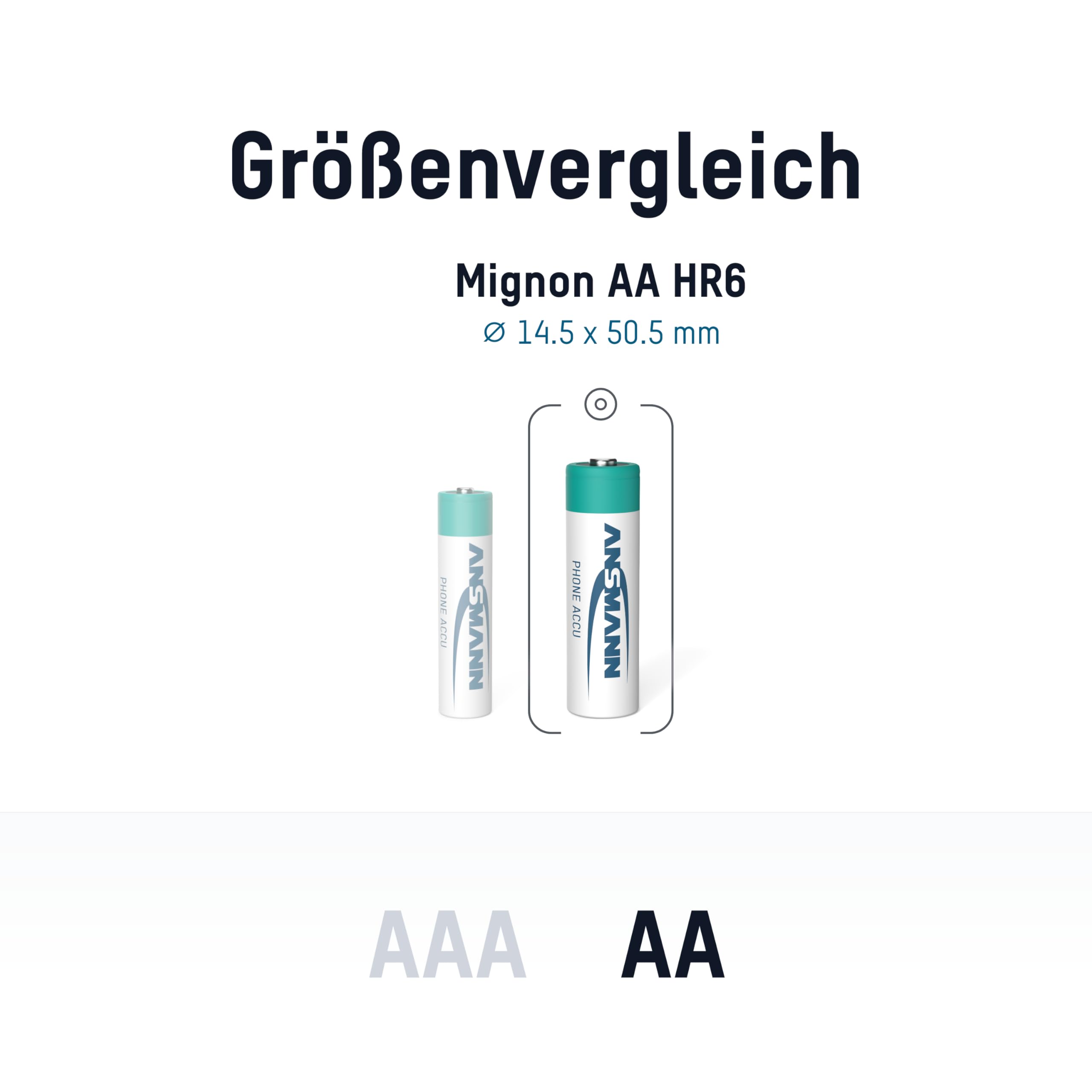 Livraison : Lot de 2 piles rechargeables HR6 / AA DECT 1300 mAh 1,2 V. Technologie maxE pour limiter l'auto-décharge.