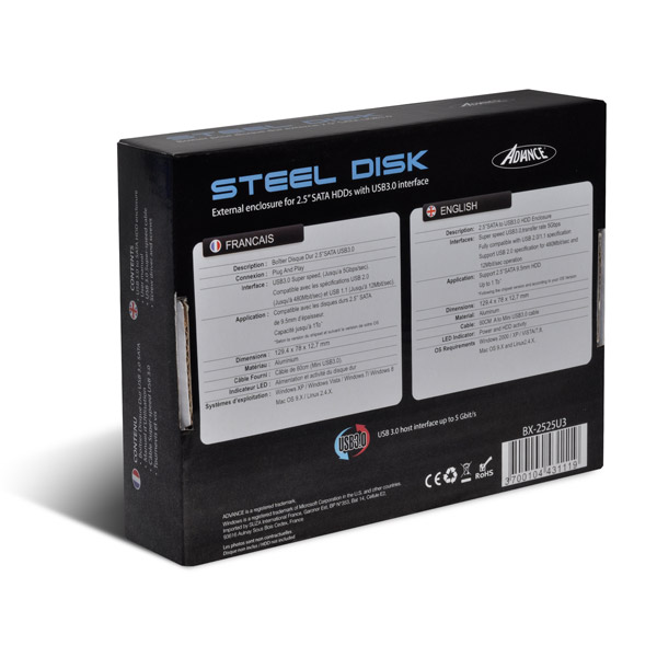 ADVANCE Boîtier Externe HDD 2.5" BX-2525U3 USB 3.0 SATA