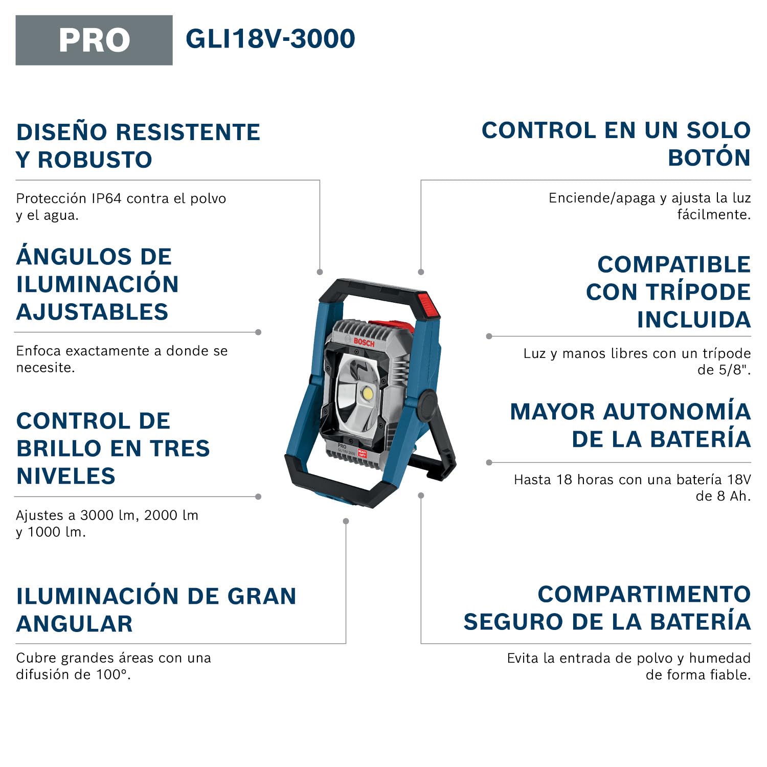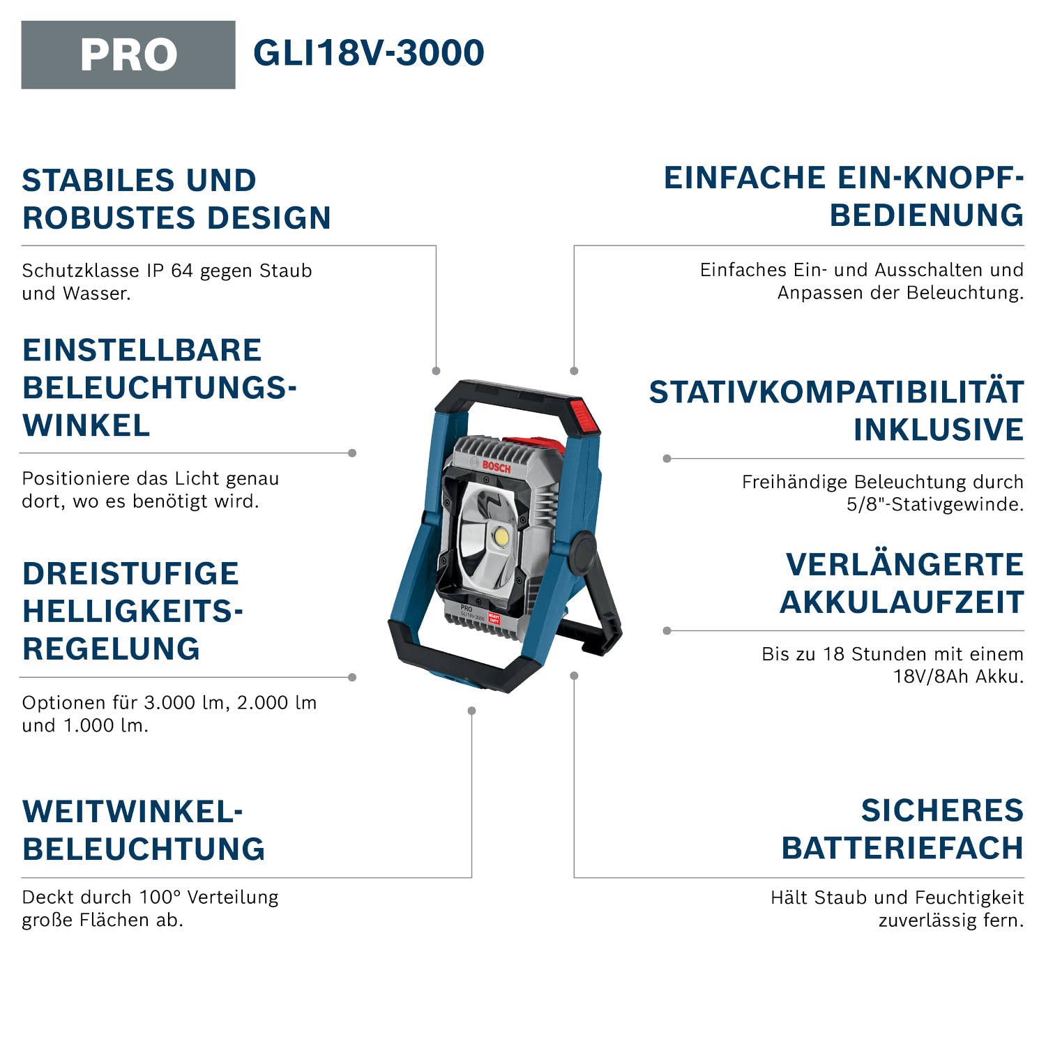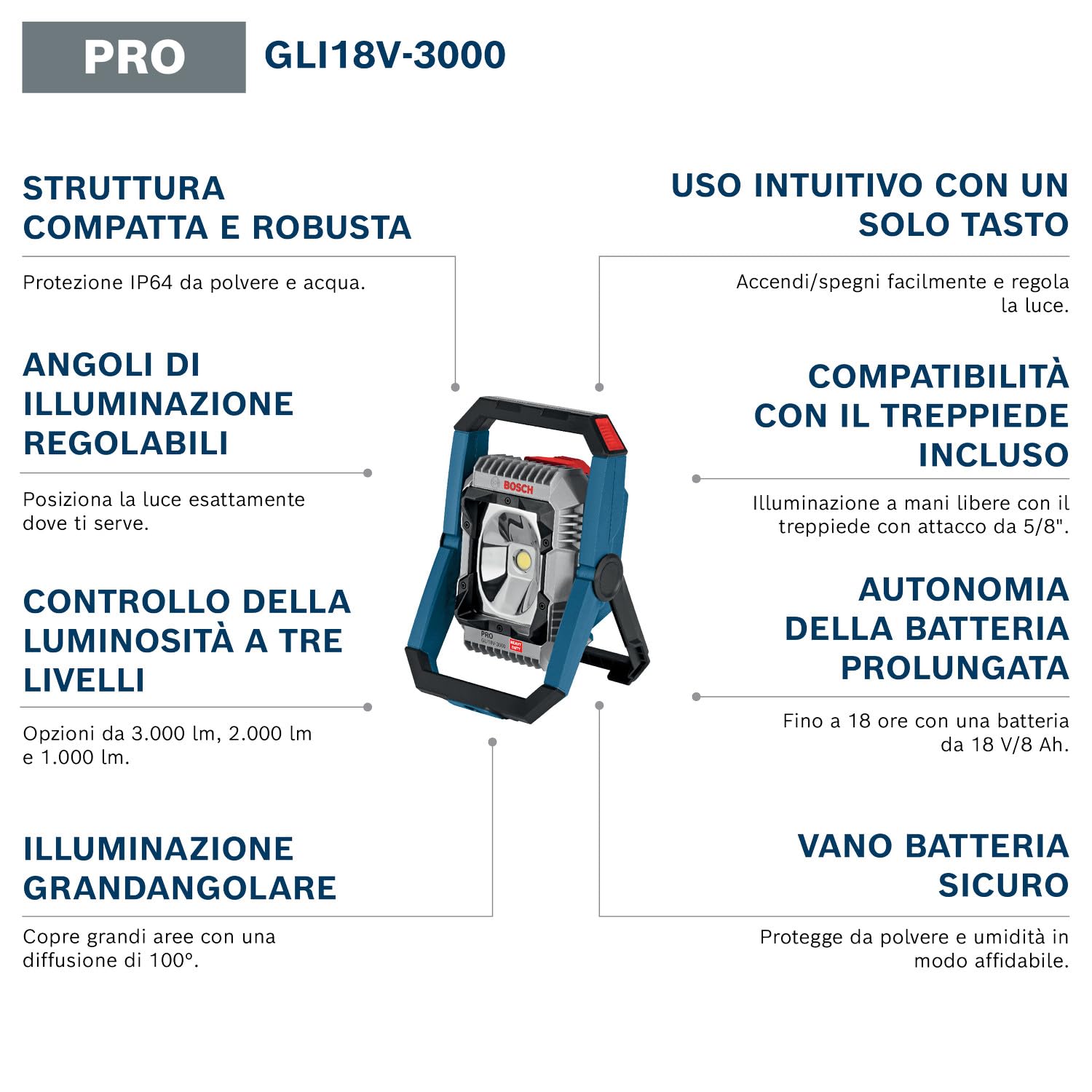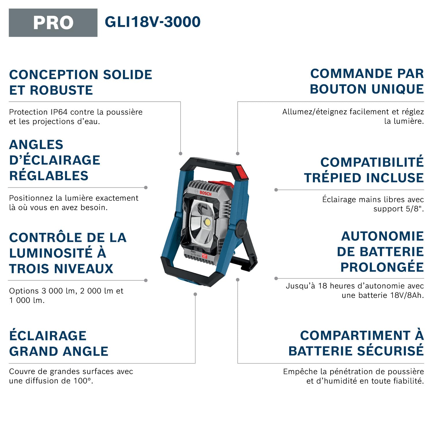 Bosch Projecteur de Chantier LED GLI 18V-3000 18V 3000 Lumens