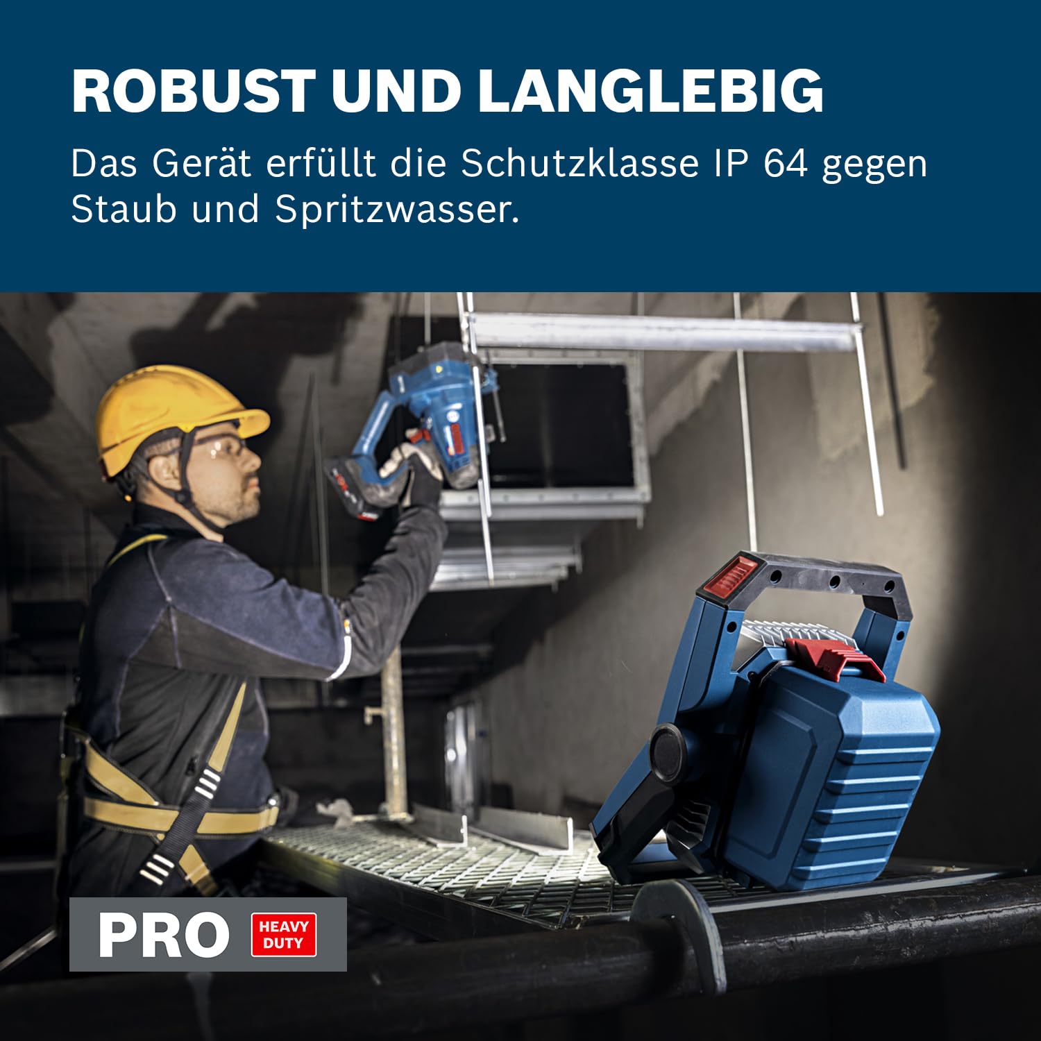 La technologie numérique simplifie désormais le quotidien sur le terrain. Ce projecteur intègre une interface Bluetooth avancée pour une gestion facilitée. ➡ Un smartphone pilote les fonctions principales de la lampe via une application dédiée. L'utilisateur modifie l'intensité lumineuse sans se déplacer physiquement vers l'outil. Cette fonctionnalité devient indispensable quand l'appareil se trouve fixé sur un échafaudage ou un plafond. La commande groupée de plusieurs unités permet d'organiser l'éclairage global du site en quelques secondes. Vous surveillez également l'état de charge des batteries à distance. La connectivité transforme ce projecteur en un véritable système d'éclairage dynamique et réactif.➡ ROBUSTESSE ET ADAPTABILITÉ TOUS TERRAINS