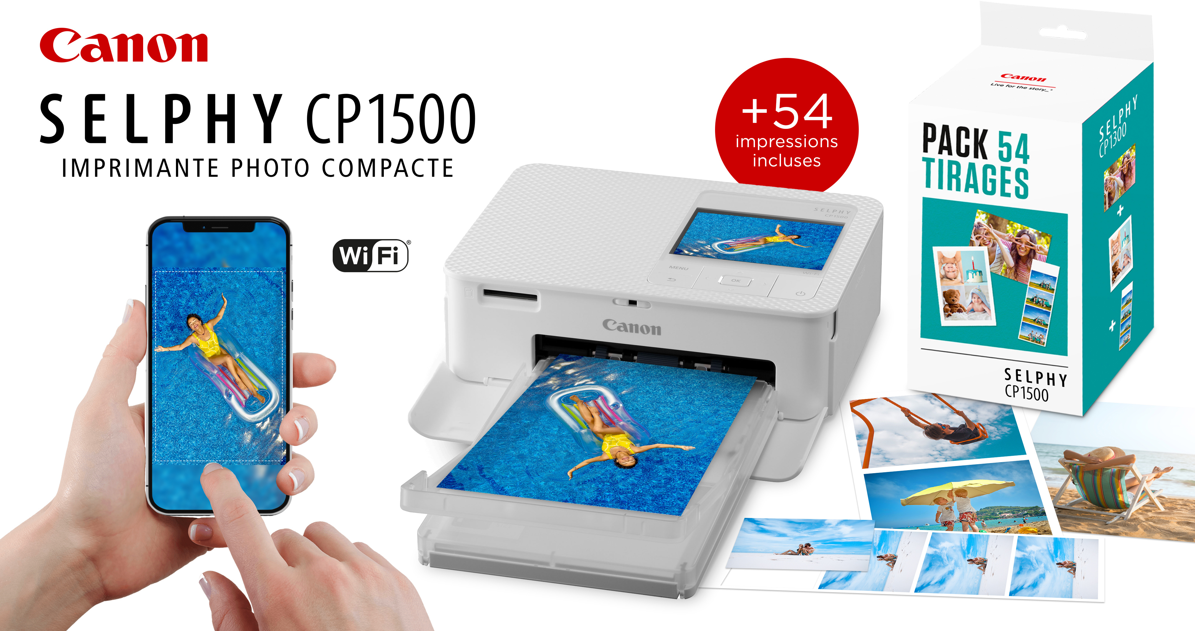 Profitez de la praticité et de la qualité d'impression professionnelle de l'imprimante photo portable couleur SELPHY CP1500 de CANON pour immortaliser vos meilleurs moments en toute simplicité.