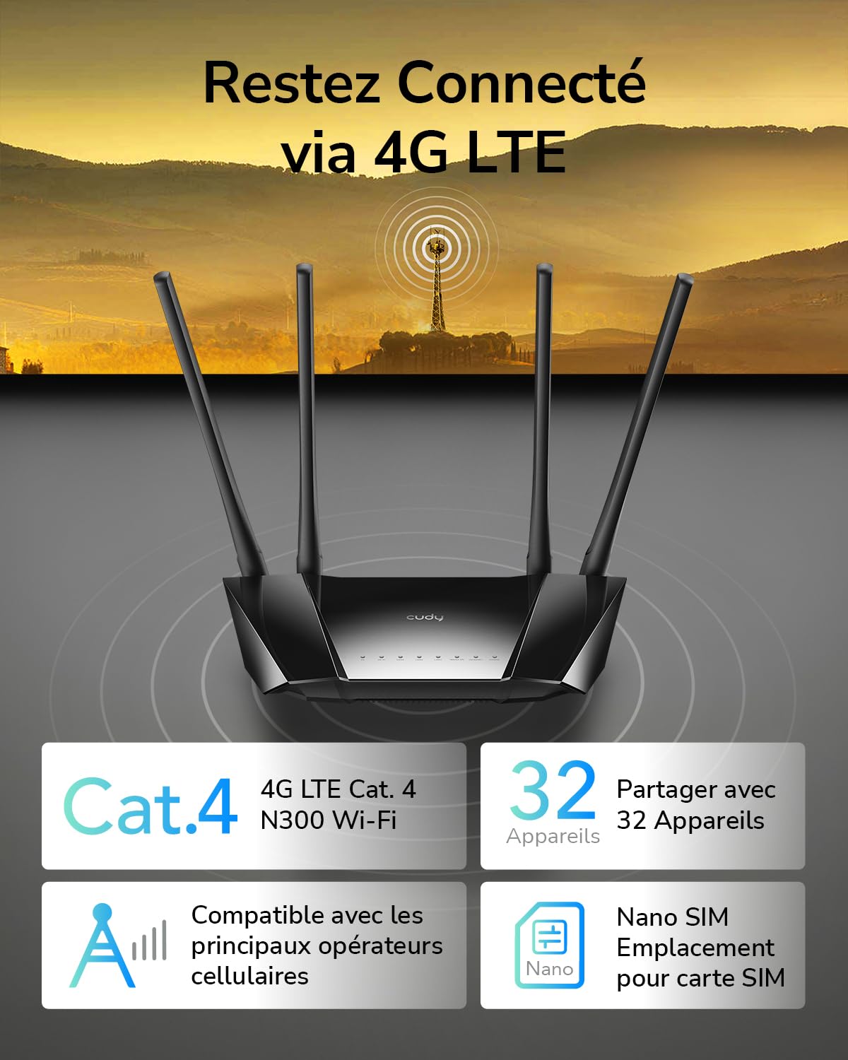 ✔ Connectivité 4G LTE Cat4 ultra-rapide