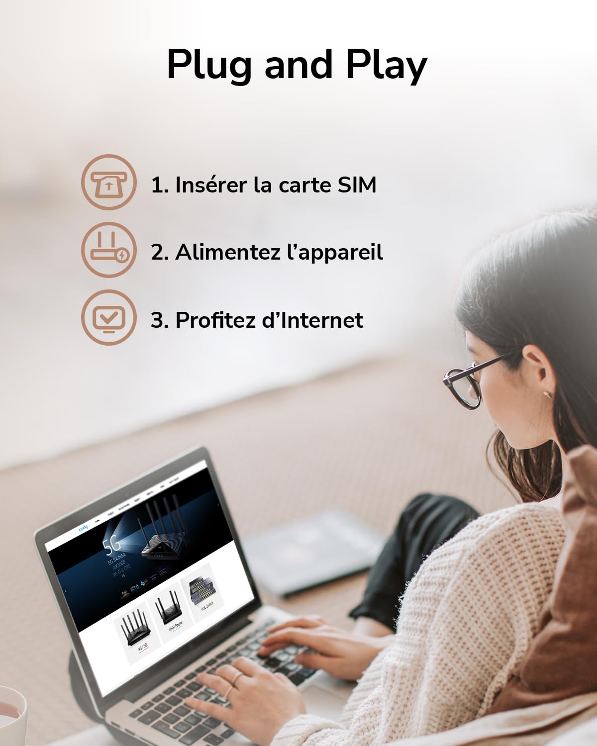 ➡ Technologie : 4G LTE Cat4 (150 Mbps/50 Mbps)
