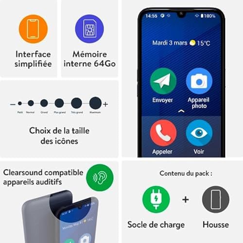 Conçu pour répondre aux exigences de la vie connectée, le Doro 8200 Plus intègre la connectivité 4G, assurant ainsi une navigation ultra-rapide et une communication stable en tout lieu. Ce smartphone est parfait pour rester connecté lors de vos déplacements et offre une gestion efficace des réseaux mobiles grâce à une technologie de pointe ⚙. En complément, la présence d’un slot microSD permet de personnaliser votre espace de stockage pour sauvegarder vos photos, vidéos et applications, répondant ainsi à tous vos besoins numériques. Le Doro 8200 Plus est un concentré de technologie conçu pour offrir polyvalence et fiabilité, tout en assurant une excellente autonomie et une connectivité sans faille ➡.