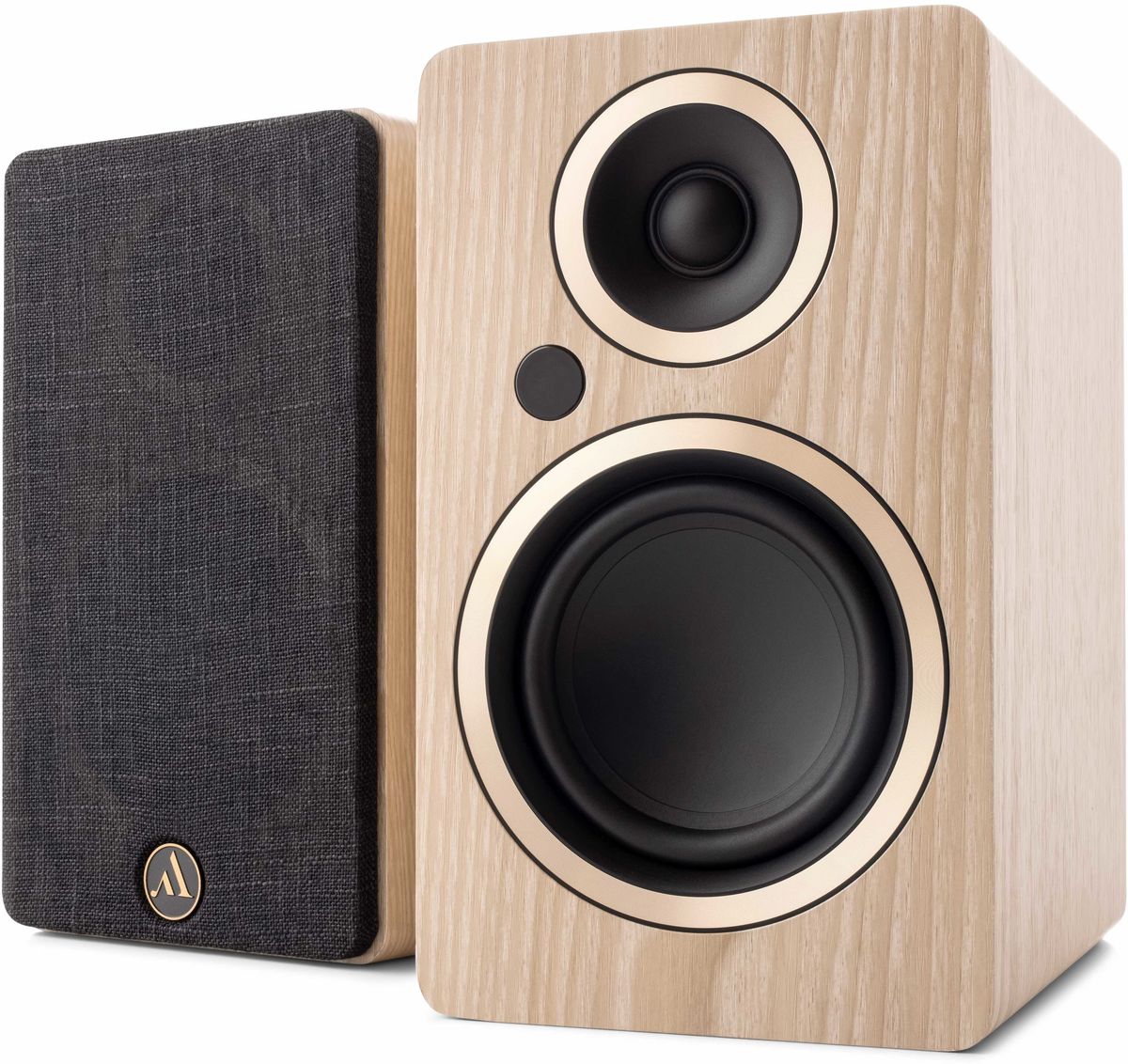 Chaque enceinte intègre un tweeter en dôme de 19 mm équipé d’un aimant néodyme, assurant un aigu précis et détaillé. Le haut-parleur médium/grave de 101 mm avec cône en papier naturel restitue les voix et instruments avec un naturel exemplaire. Cette configuration bi-amplifiée favorise une séparation optimale des registres pour une écoute vivante et immersive.
