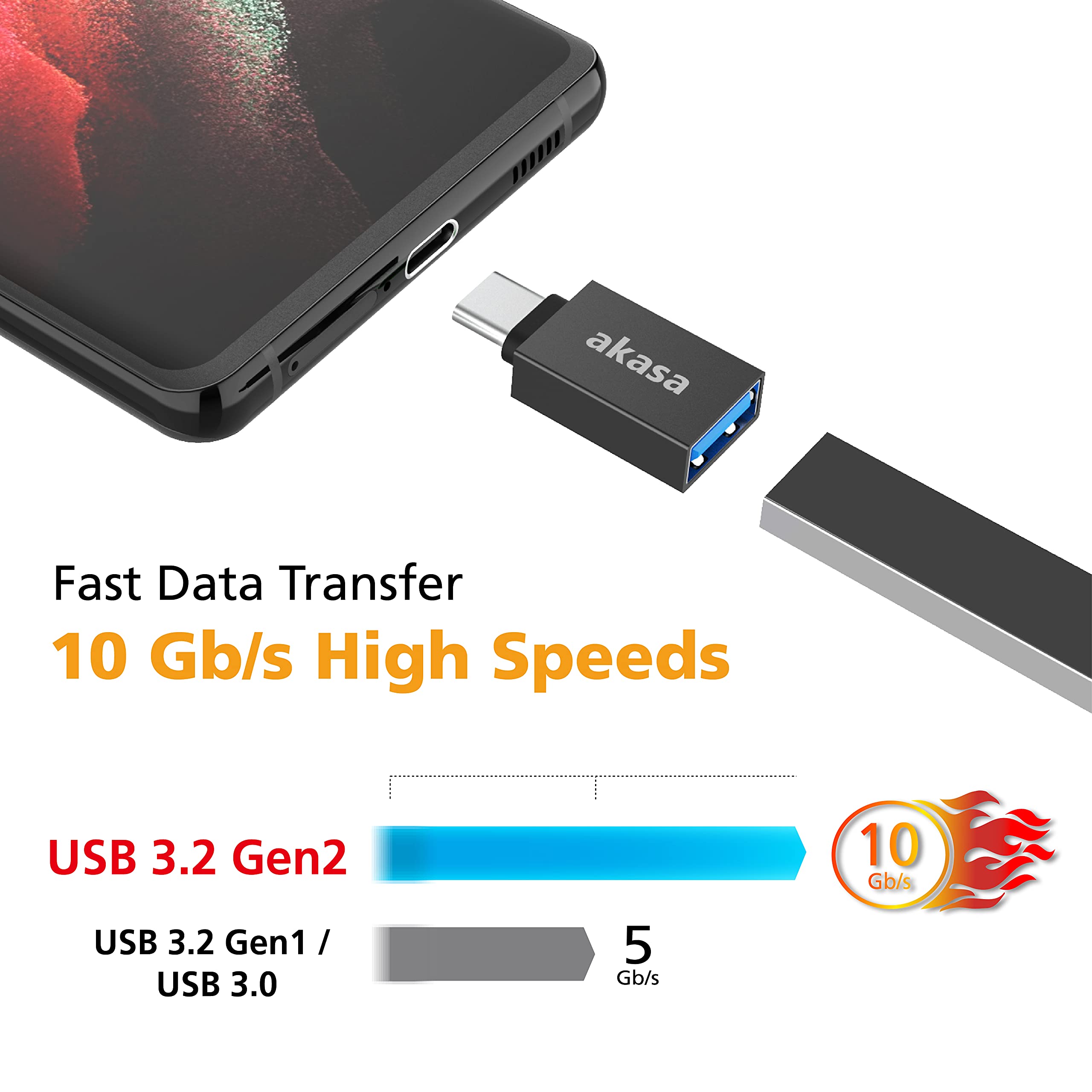 L’adaptateur AKASA Typ A sur Typ C garantit une connexion fluide entre les appareils munis de ports USB Typ A et ceux utilisant la norme USB Typ C, désormais incontournable.
