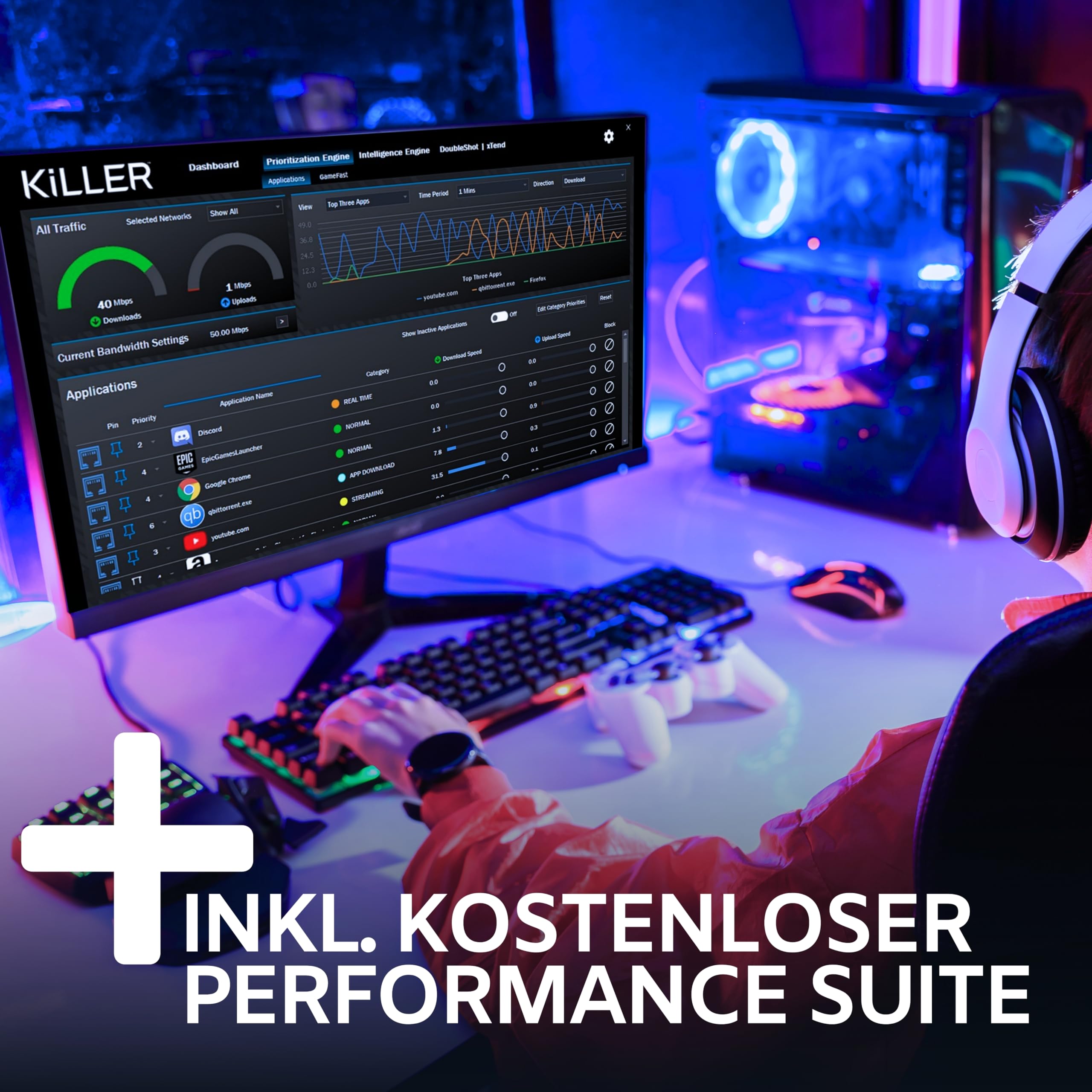 L’adaptateur INTEL Killer Wi-Fi 6E AX1675 est équipé du Killer Intelligence Engine, capable de prioriser automatiquement le trafic réseau.