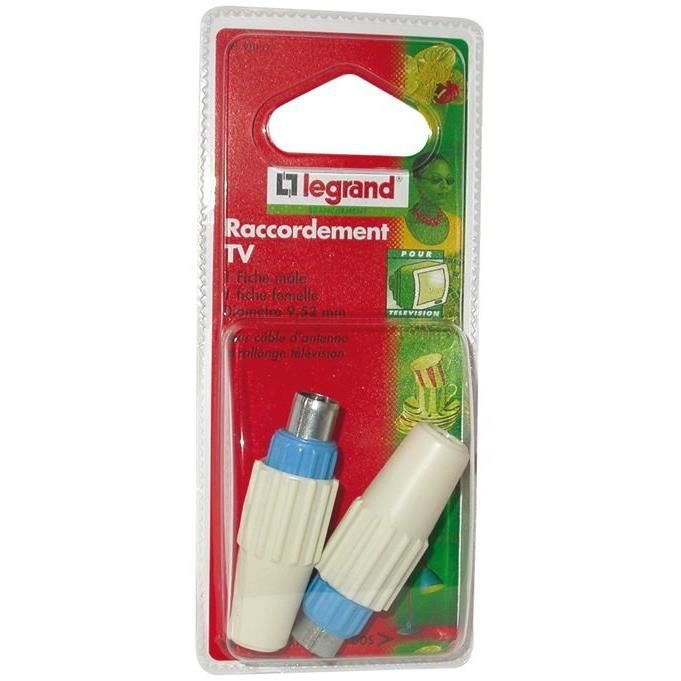 La fiche TV LEGRAND respecte les normes européennes CE ainsi que les standards français en matière de connectiques coaxiales, assurant ainsi une conformité totale avec les installations domestiques et professionnelles. Son diamètre Ø9,52 mm, également appelé 3/8 pouces, est le standard recommandé pour la transmission des signaux RF, ce qui évite tout phénomène d’adaptation d’impédance et garantit une qualité de réception optimale sans perturbations ni interférences.