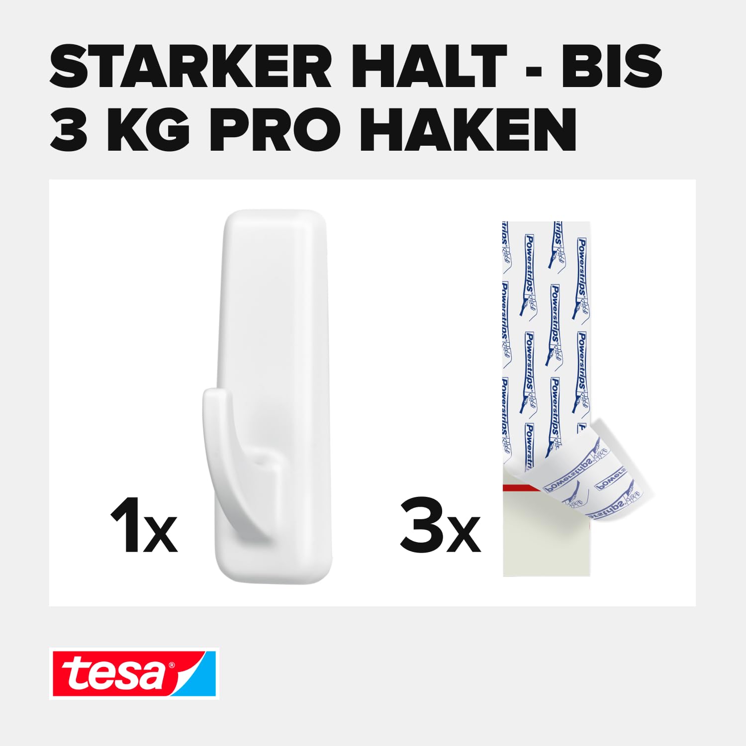 TEAC tesa Powerstrips Haken XL Rechteck 3kg selbstklebend weiß