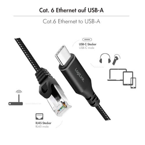 Le câble LOGILINK USB-C 3.2 Ethernet-Kabel garantit une transmission de données fluide et rapide. Grâce à la norme USB 3.2 Gen 2, il offre des débits pouvant atteindre 10 Gbit/s en mode natif, ce qui assure une compatibilité parfaite avec les ports USB-C modernes. Ce câble assure aussi une connexion stable en réseau filaire, évitant les pertes que peuvent rencontrer les connexions sans fil.