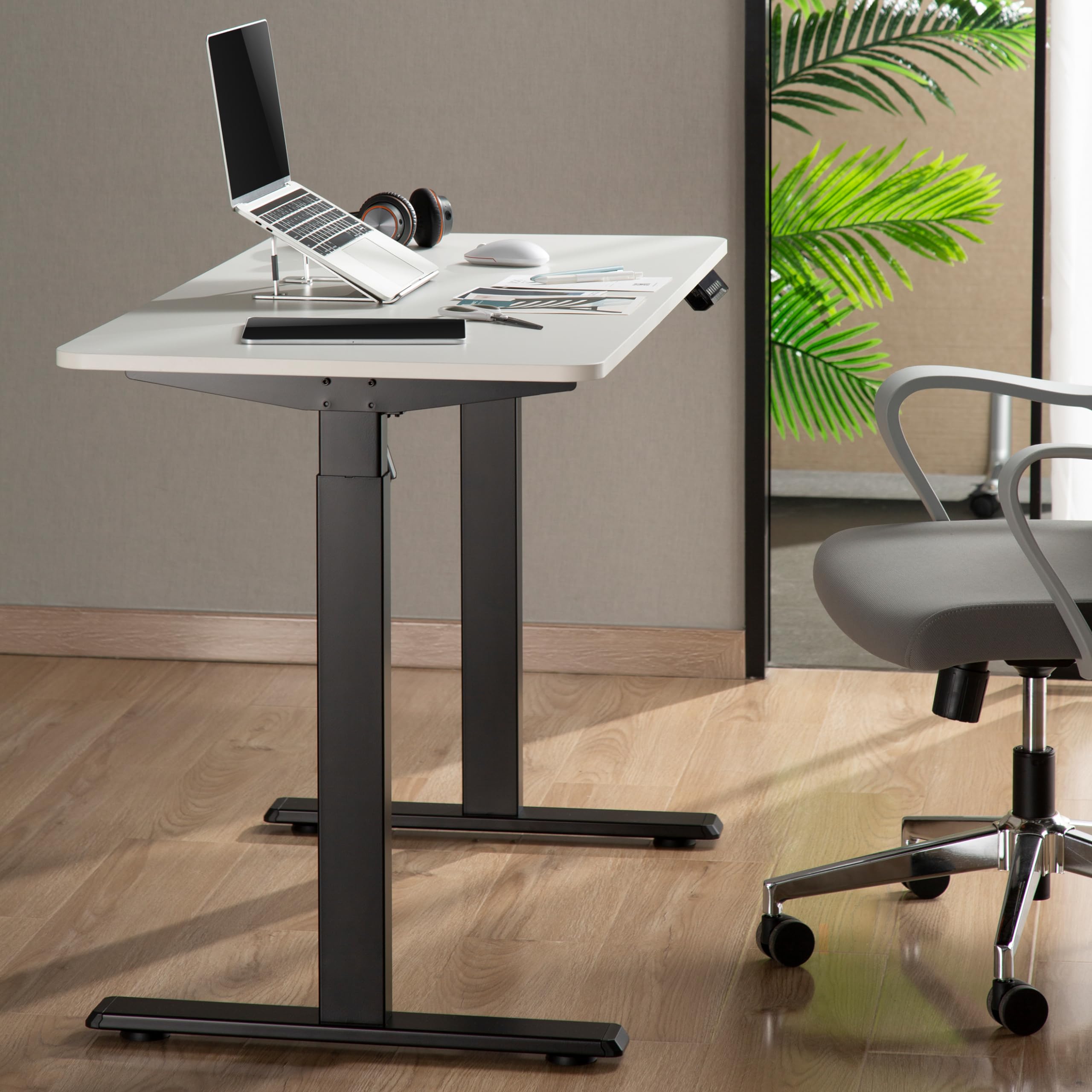 Le système est équipé d’un panneau de commande simple d’utilisation, permettant de régler aisément la hauteur du bureau à l’aide de boutons tactiles. Cette interface pratique favorise un ajustement rapide, même pendant le travail, sans interrompre la concentration. De plus, la commande comprend une fonction mémoire pour enregistrer plusieurs positions favorites, ce qui accélère l’utilisation quotidienne.