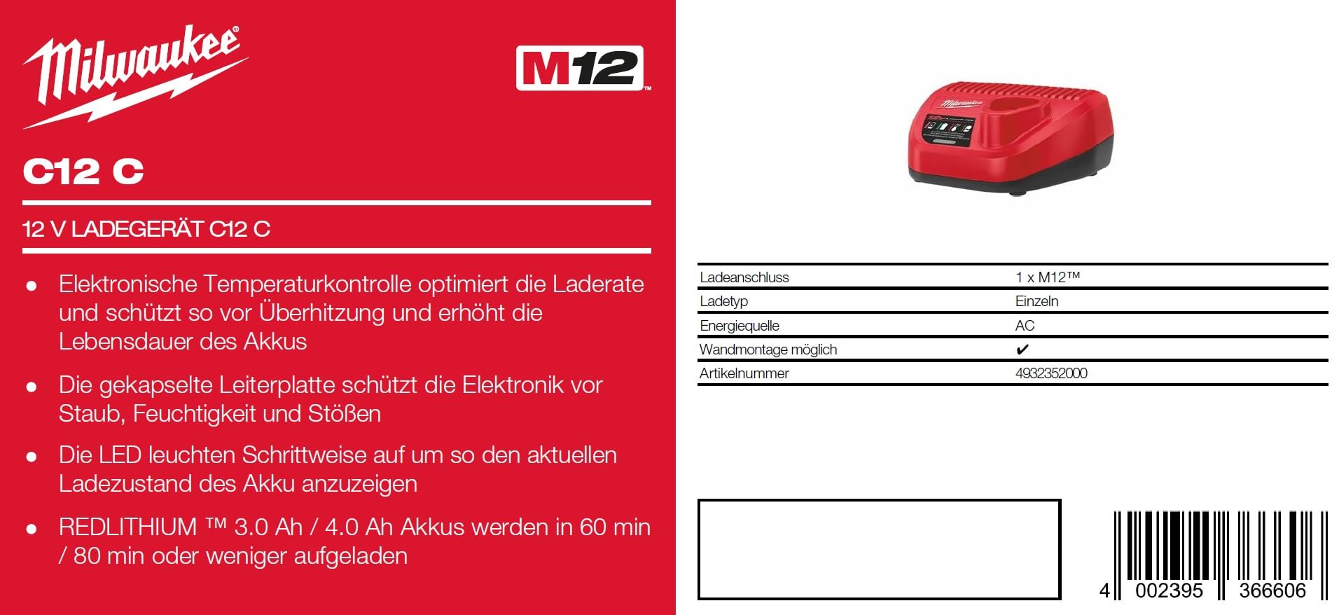 Le Milwaukee Chargeur 12V C12-C s'impose comme un accessoire incontournable pour tout utilisateur d’outillage professionnel M12. Il allie performance, sécurité et praticité dans un format conçu pour durer. Grâce à ses nombreuses protections et sa charge rapide, il maintient vos batteries prêtes à l’emploi, maximisant ainsi votre efficacité sur tous les chantiers. -