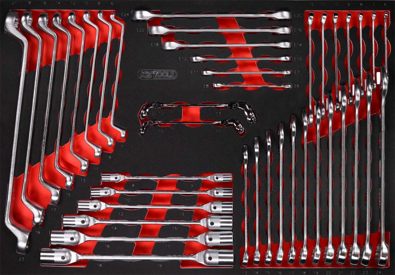 La mousse tricolore haute résistance utilisée dans ce module KS TOOLS offre une excellente protection aux outils tout en facilitant leur identification.