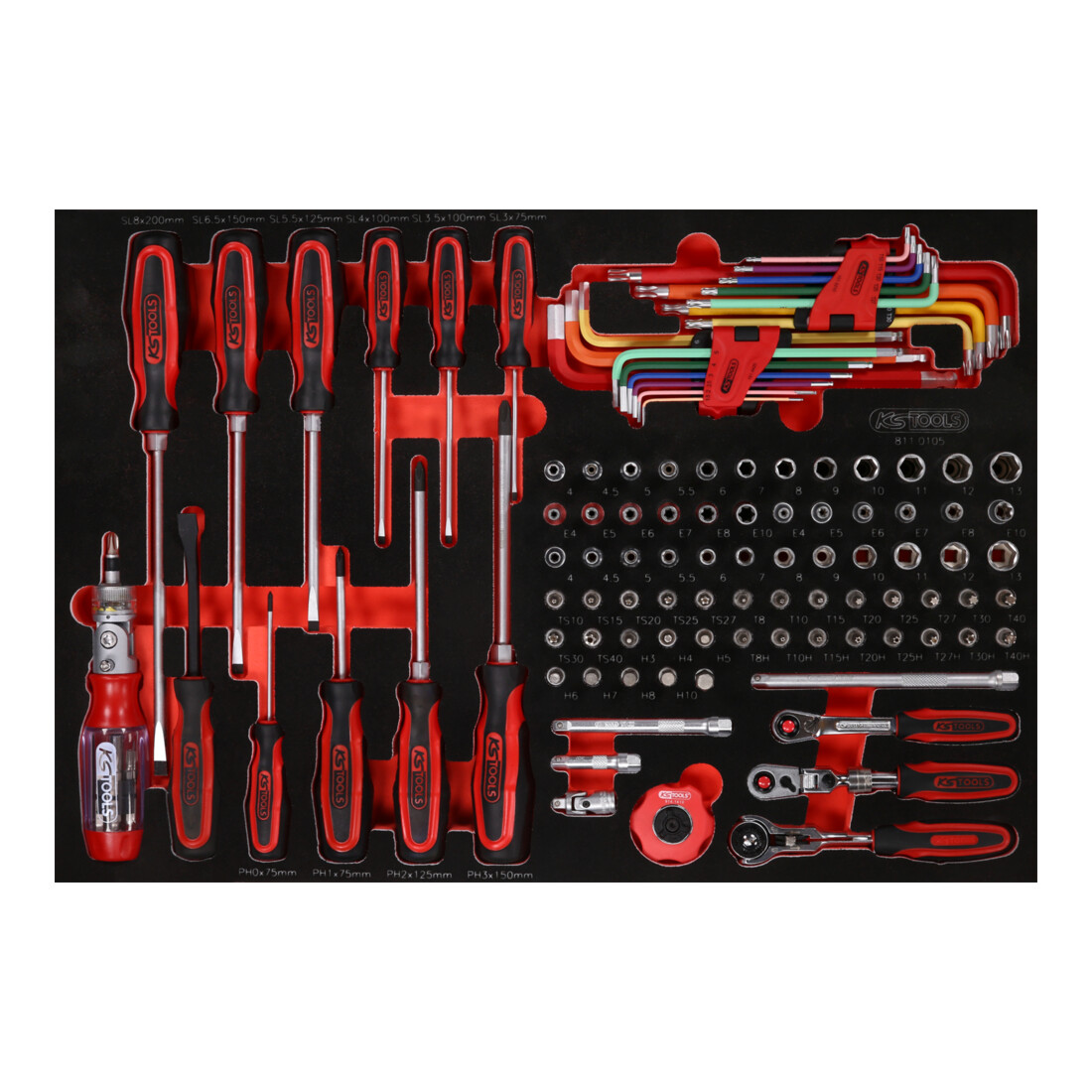 KS TOOLS Jeu de clés à douille et de tournevis 1/4' dans insert en mousse, 105 pcs