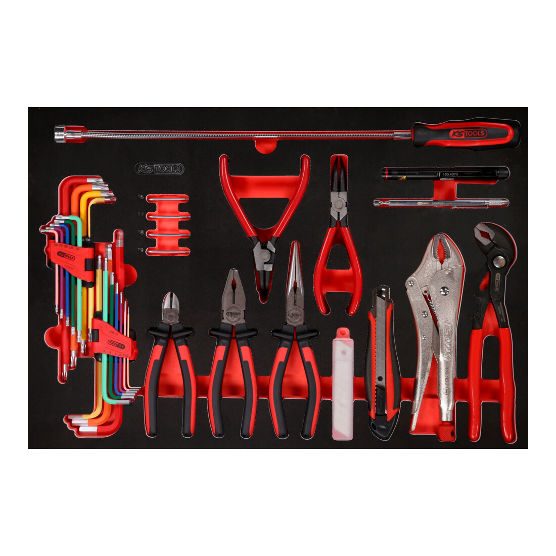 KS TOOLS Jeu de clés mâles coudées et de pinces dans insert en mousse, 45 pcs