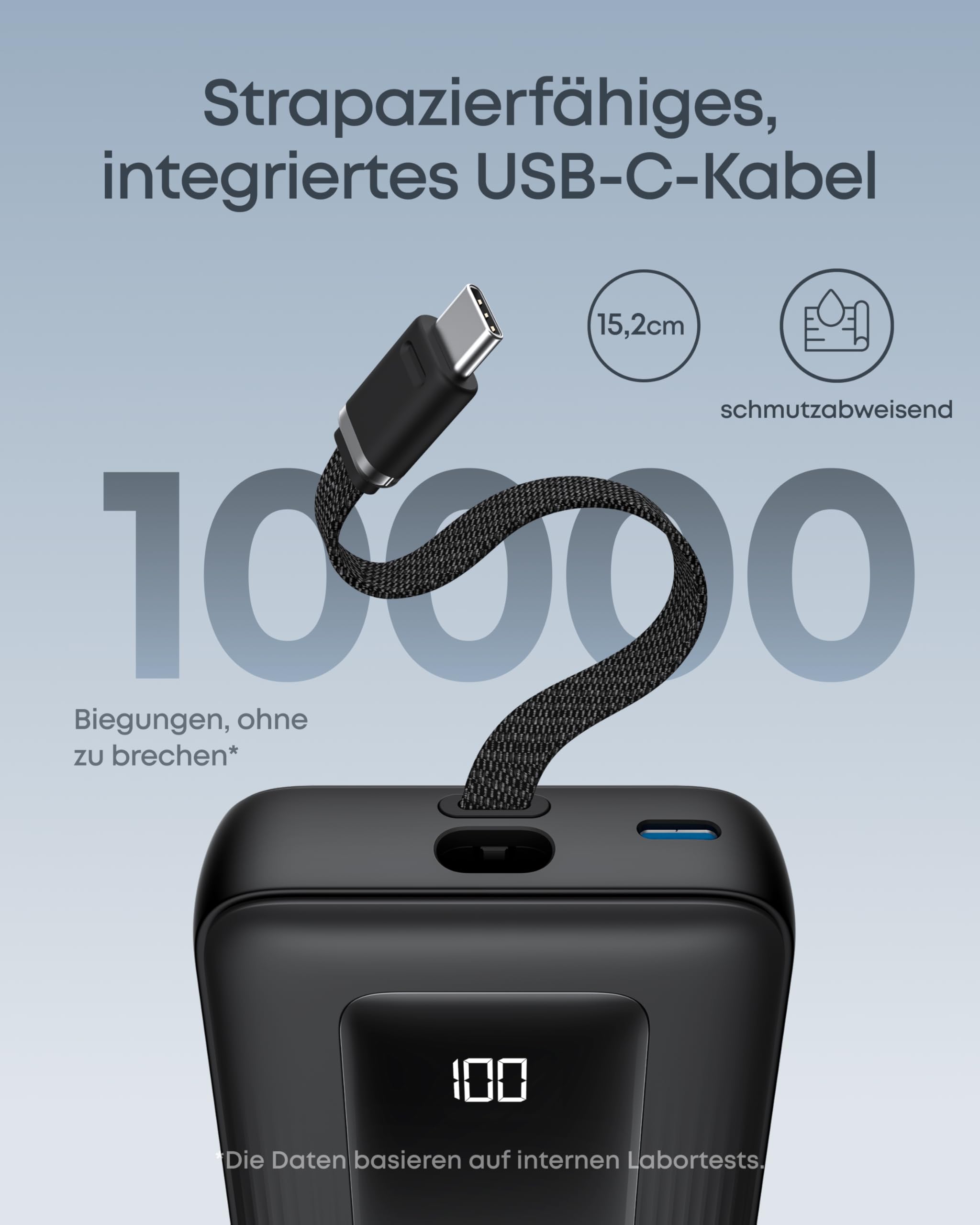 L’Anker Zolo Power Bank intègre un câble USB-C dans son design, évitant ainsi de transporter un câble supplémentaire. Ce câble incorporé, robuste et parfaitement dimensionné, vous offre une solution pratique à portée de main, pour recharger vos appareils compatibles USB-C en toute simplicité. L’intégration du câble réduit les risques de perte et simplifie l’accessibilité, en phase avec un usage quotidien nomade.
