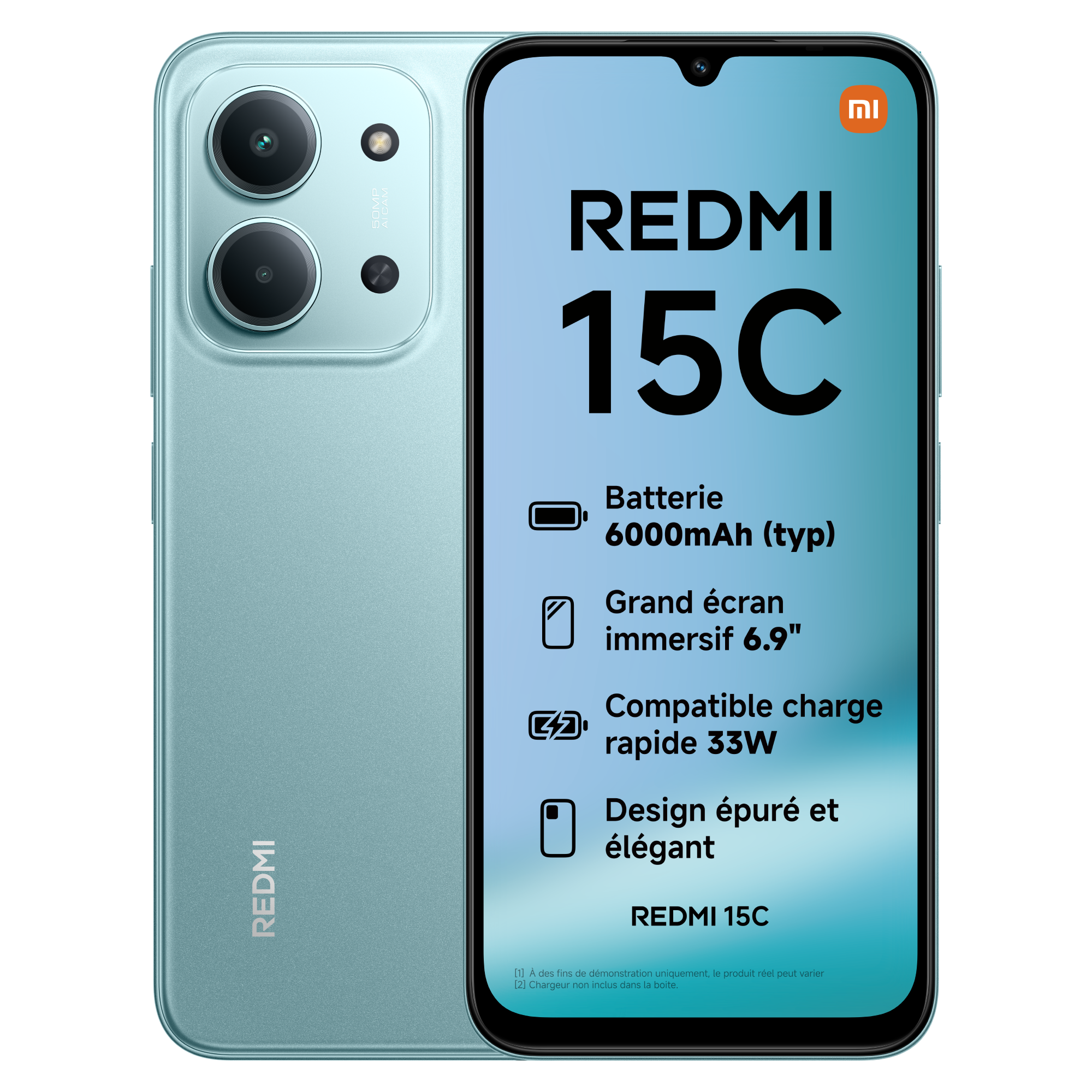 EAN : 3662515081805 ,Marque : Xiaomi ,Codelec : 715100535 ,Libellé : PACK Redmi 15C 256G Vert + Coque TPU et Verre trempé ,Identifiant EPREL : 2379211 ,Catégorie produits : smartphones ,Description : Écran 120Hz ultra-fluide de 6,88’’ Une expérience visuelle fluide et immersive Double caméra arrière de 50MP avec IA Des selfies ultra-détaillés de 13MP Très longue autonomie 5160mAh Compatible charge rapide 18W RAM extensible jusqu’à 16Go Puissant processeur MediaTek Helio G81-Ultra ,Garantie légale de conformité : 2 ans. Produits d'occasion : dispense de fournir la preuve du défaut de conformité dans les 12 mois de la délivrance du bien. ,Unité de stockage : Go ,Hauteur produit emballé : 30 ,Hauteur du produit : 30 ,Indice DAS : DAS Tête 0.987 W/kg DAS Tronc 0.902 W/kg DAS Membres 2.509 W/kg ,Résolution d'écran (en pixels) : 1600 x 720 pixels ,Profondeur produit emballé : 50 ,Indice de réparabilité : 7.9 ,Reprise DEEE : En savoir plus ,Taille de l'écran (en pouces) : 6.9 ,Qu'est-ce que le DAS ? : Le débit d'absorption spécifique (DAS) local quantifie l'exposition de l'utilisateur aux ondes électromagnétiques de l'équipement concerné. Le DAS maximal autorisé est de 2 W/kg pour la tête et le tronc et de 4 W/kg pour les membres. ,Etiquette énergie (PDF) : ,Système d'exploitation mobile : Android ,Indice de réparabilité (document) : ,Disponibilité des pièces détachées : Non ,Classe d’efficacité énergétique : A ,Image 1 :
