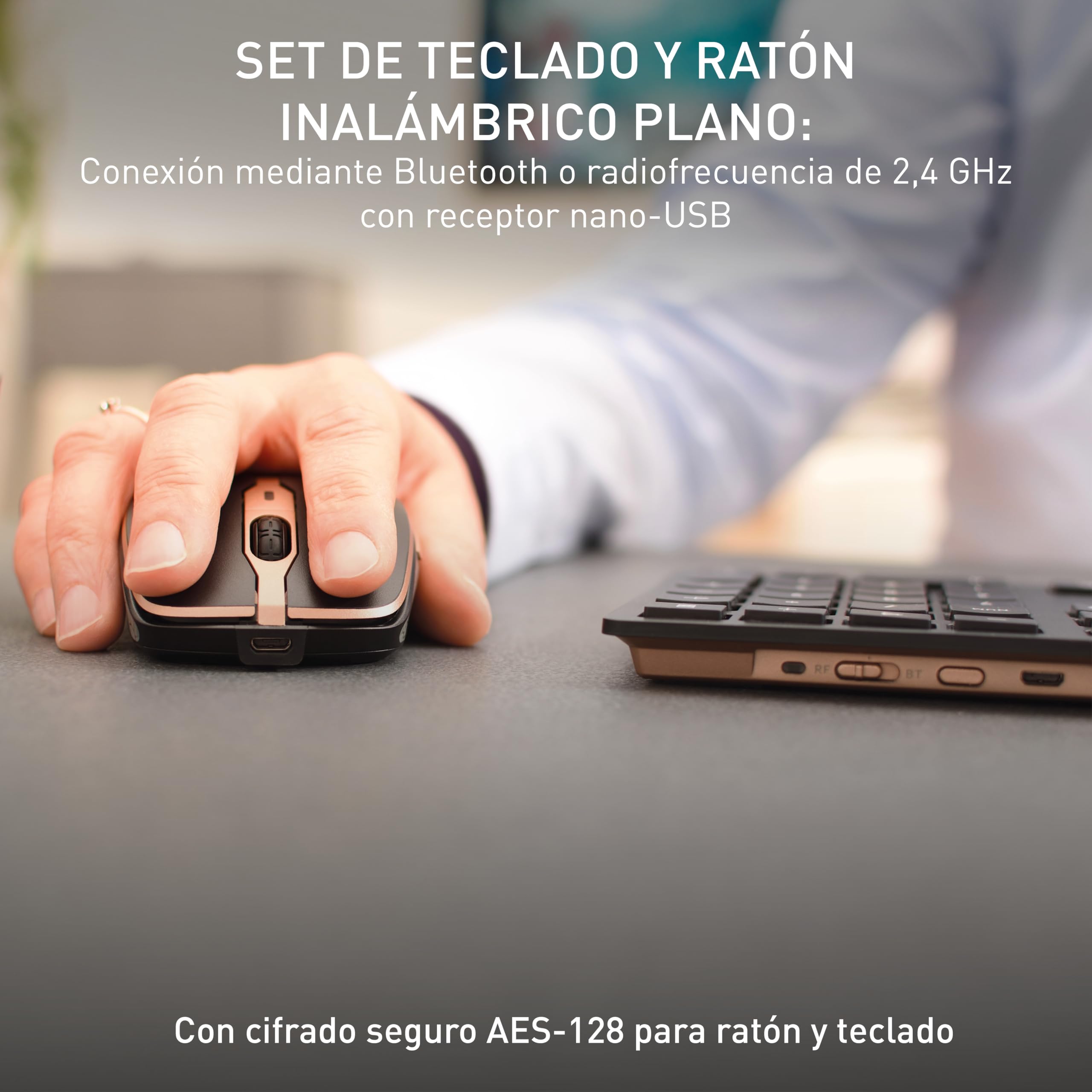 Cherry DW 9100 SLIM Wireless Keyboard/Mouse Set USB and Bluetooth black/bronze rechargable (GB) QWERTY
