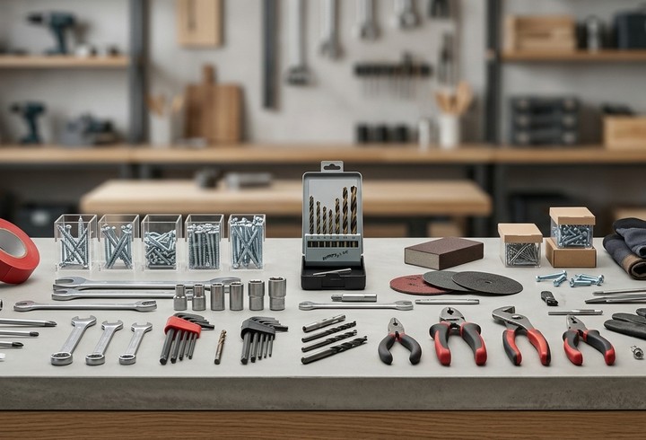 - Perçage et vissage : Forets béton, mèches à bois de précision et embouts de vissage haute résistance pour visseuses et perforateurs.