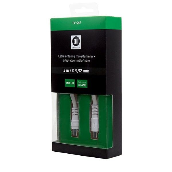 D2 Diffusion C ble Coaxial m le/femelle 9,52mm +1 adaptateur m le/m le 3 m BlancD2 Diffusion C ble Coaxial m le/femelle 9,52mm +1 adaptateur m le/m le 3 m Blanc