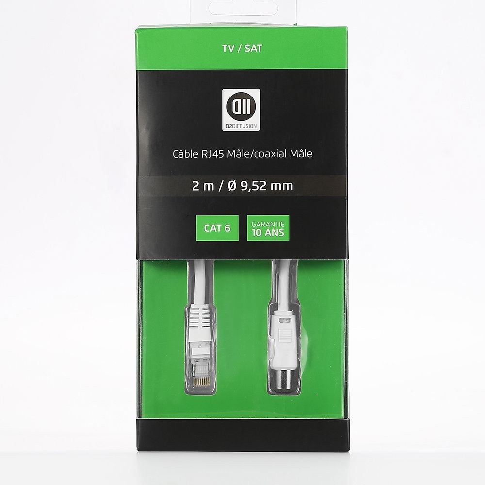 D2 Diffusion Câble RJ45 vers Coaxial Mâle Mâle 2m 9.52mm Blanc