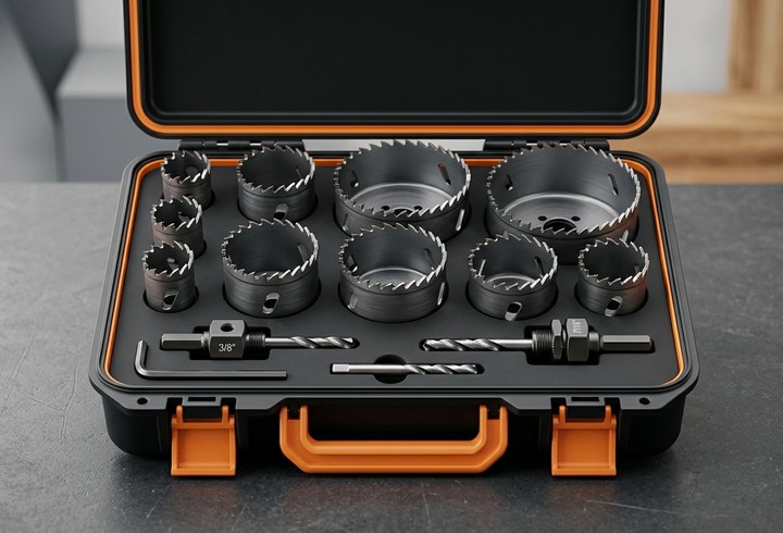 - Polyvalence de coupe : Des kits adaptés aux perceuses standards et multi-cutters, incluant des accessoires complémentaires comme des forets centreurs et des adaptateurs.
