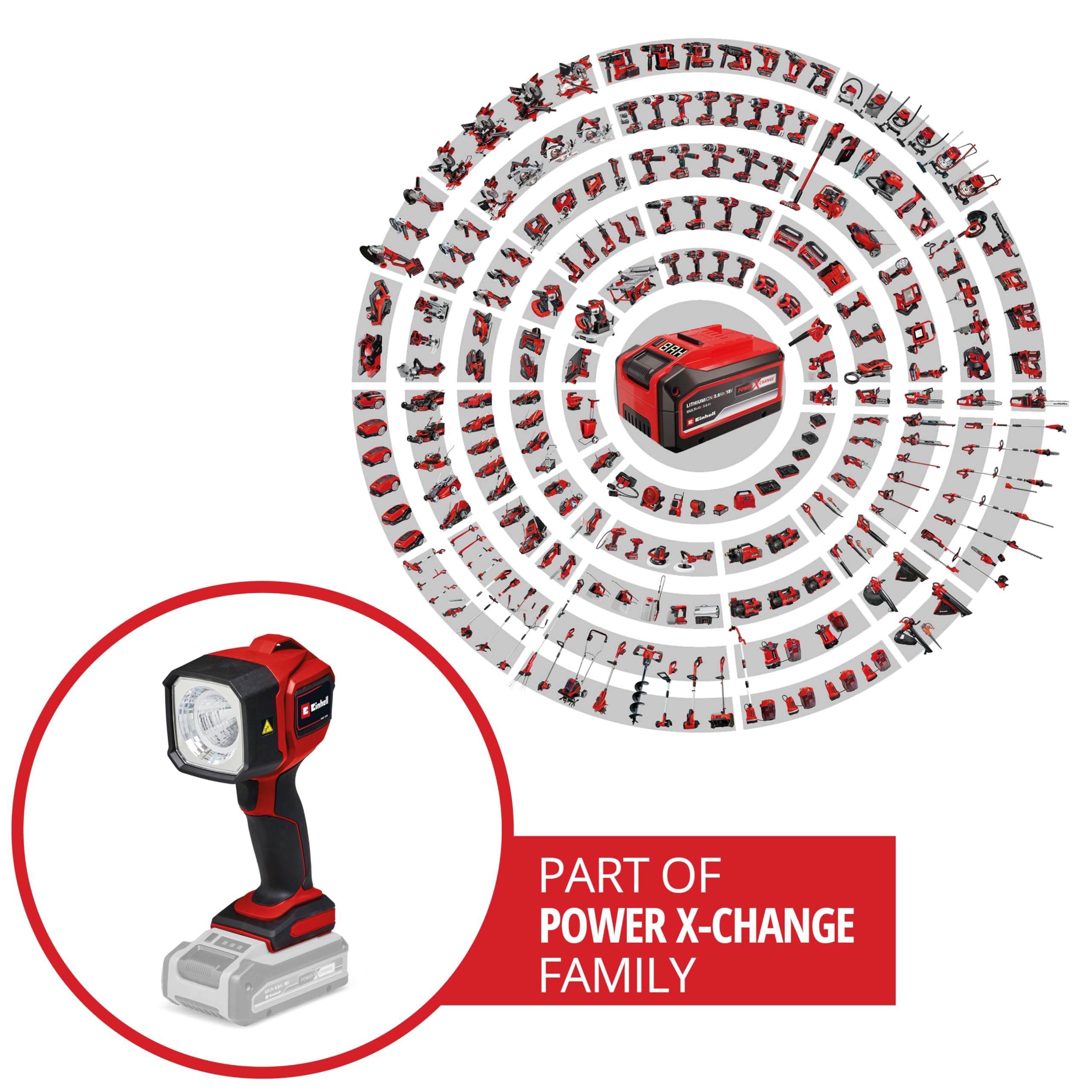 La Einhell Akku-Lampe TC-CL 18/350 Li fait partie du système modulaire Power X-Change. Cette compatibilité vous permet d’utiliser la même batterie interchangeables sur un large éventail d’outils et accessoires Einhell, ce qui simplifie la gestion de votre équipement. L’investissement dans cette lampe s’inscrit ainsi dans une démarche durable et économique, grâce à la possibilité de partager la batterie entre plusieurs appareils.
