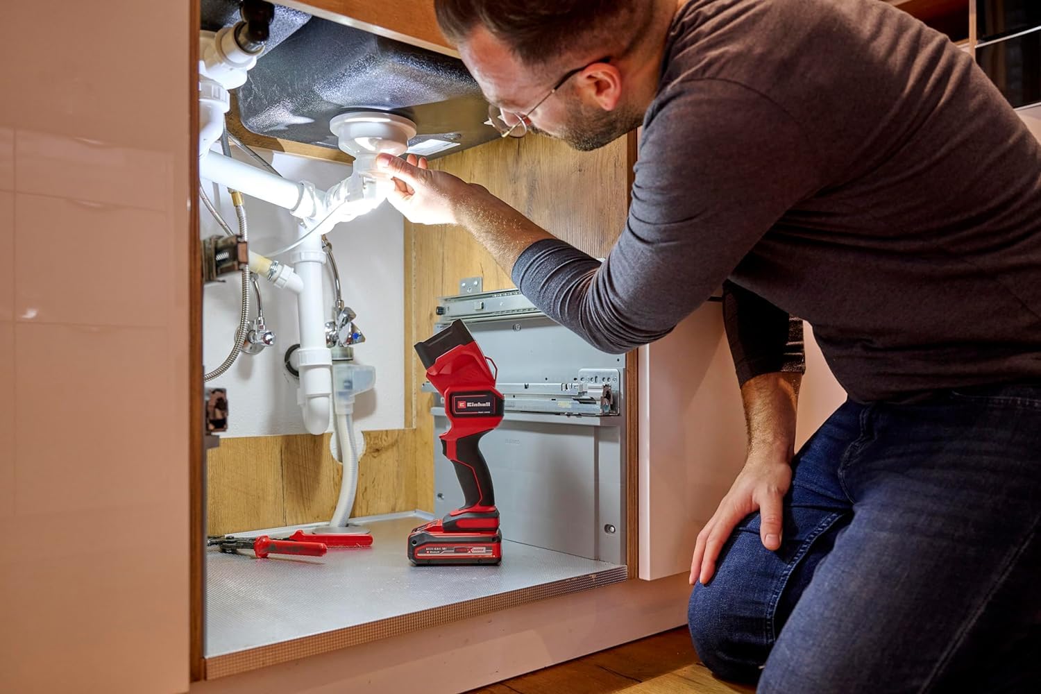 L’Einhell Akku-Lampe TC-CL 18/350 Li - Solo s’impose ainsi comme un outil incontournable. Elle combine puissance d’éclairage, mobilité, robustesse et flexibilité, optimisant vos conditions de travail. Que ce soit pour le bricolage, la rénovation ou les interventions professionnelles, cette lampe sans fil vous accompagnera durablement avec efficacité et confort.Einhell Akku-Lampe TC-CL 18/350 Li - Solo