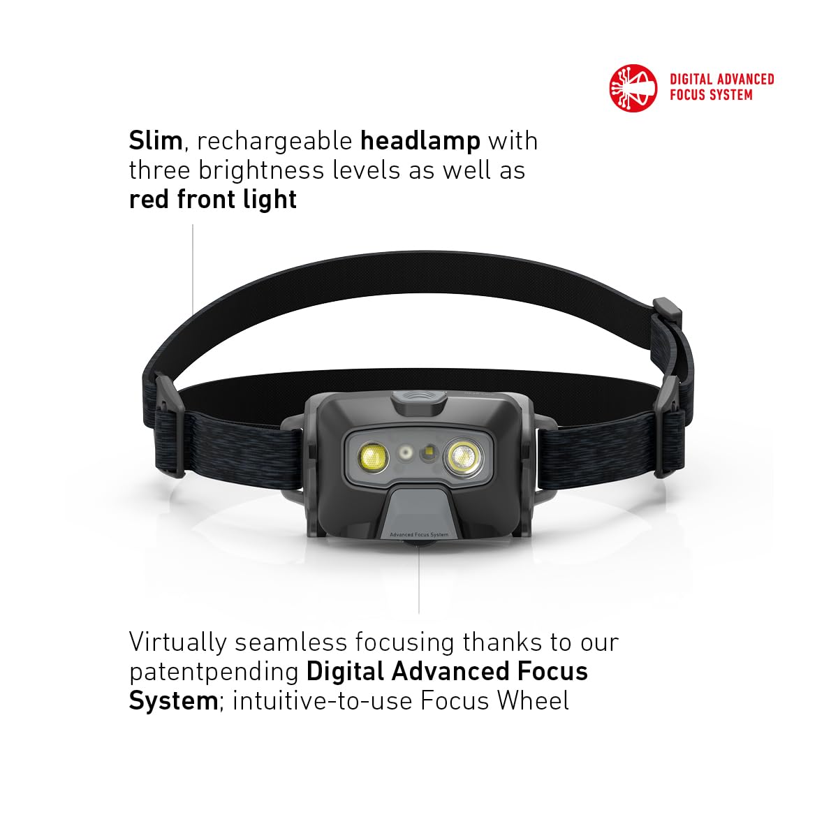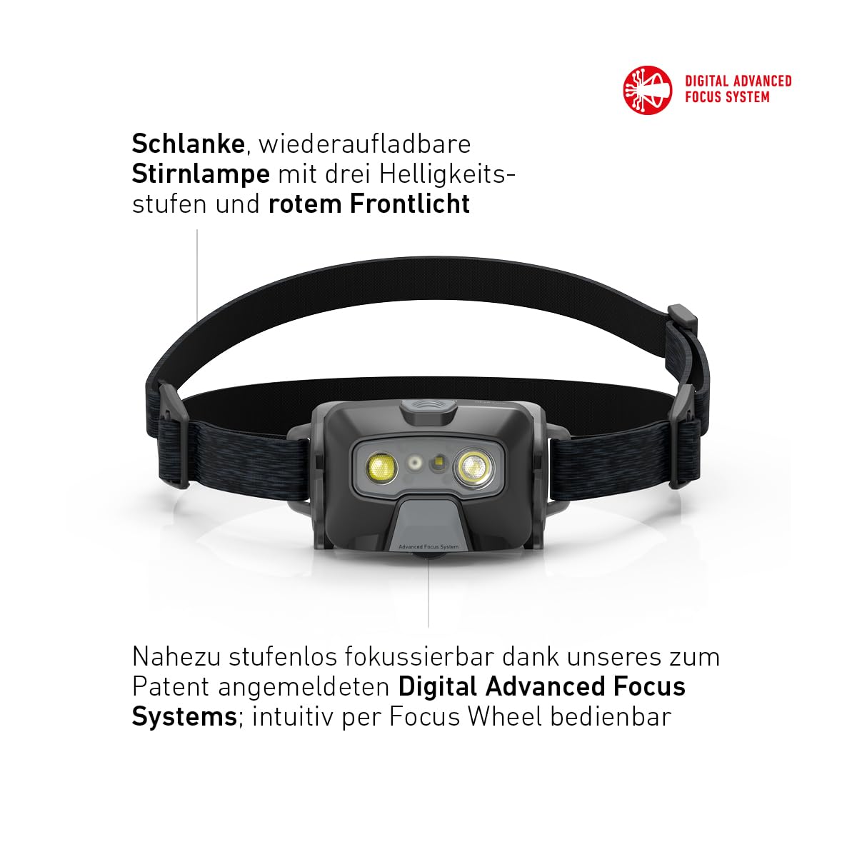 Léger et parfaitement équilibré, le design de la Stirnlampe HF6R Core offre un confort d’usage exceptionnel. Son bandeau ajustable s’adapte à toutes les tailles de tête, assurant une fixation stable sans points de pression gênants. Le corps de la lampe, facile à manipuler même avec des gants, propose plusieurs modes d’éclairage accessibles instantanément via un bouton ergonomique. Une inclinaison réglable du faisceau permet d’orienter précisément la lumière selon la tâche, améliorant ainsi la précision sans effort.