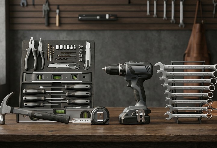 - Outillage manuel : tournevis, clés, pinces et niveaux pour une finition impeccable.