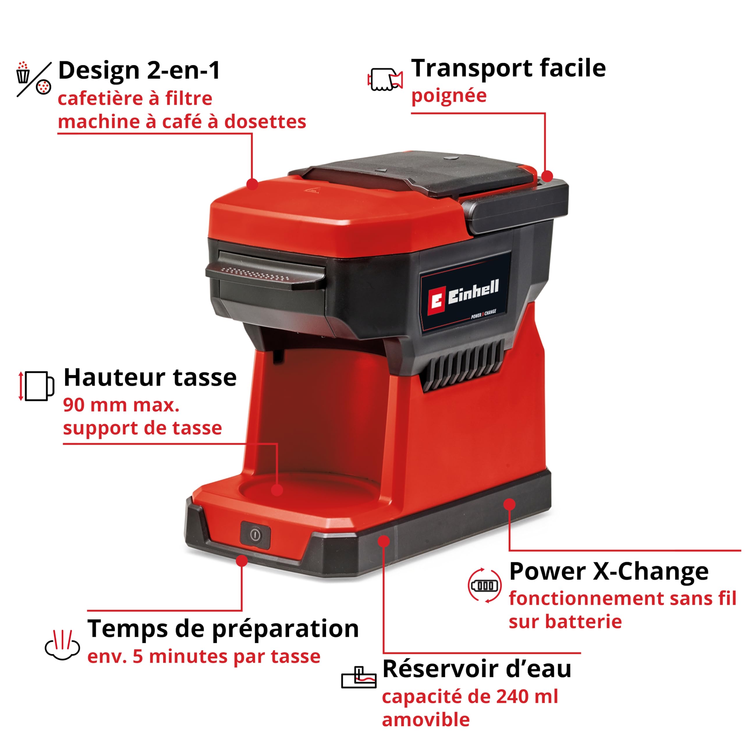 Einhell Power X-Change Akku-Kaffeemaschine TE-CF 18 Li-Solo (ohne Batterie et Ladegerät)