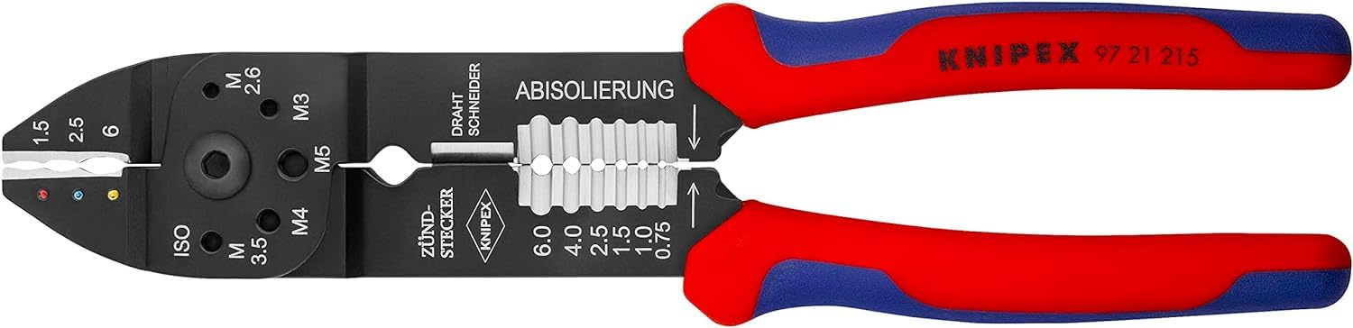 Que ce soit pour les cosses isolées, non isolées ou semi- isolées, la Knipex Crimpzange 97 21 215 s’adapte avec précision à chaque type.