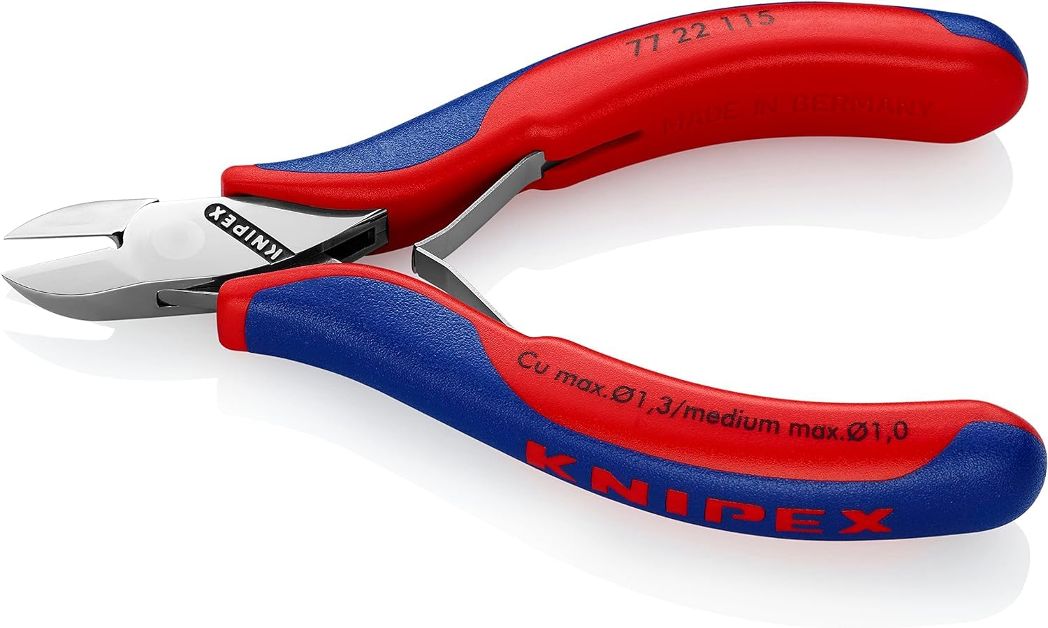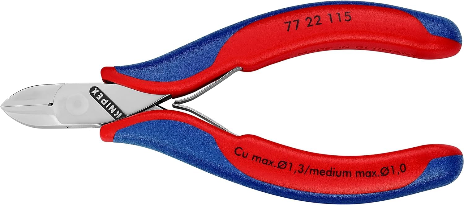 La pince Knipex Elektronik-Seitenschneider 7722115 est conçue pour épouser parfaitement la forme de la main. Sa prise en main douce mais ferme réduit la fatigue lors d’une utilisation prolongée. Le manche isolé offre également une bonne sécurité électrique pour les interventions sur circuits sensibles.