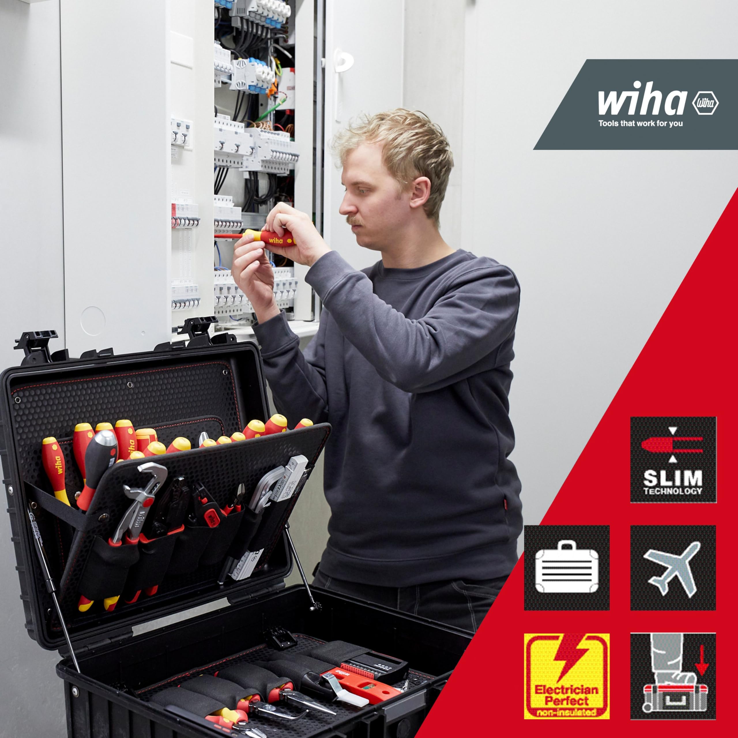 Avec le Wiha Werkzeug-Set Elektriker Competence XL, chaque intervention est facilitée grâce à une organisation réfléchie qui garantit disponibilité et rapidité.