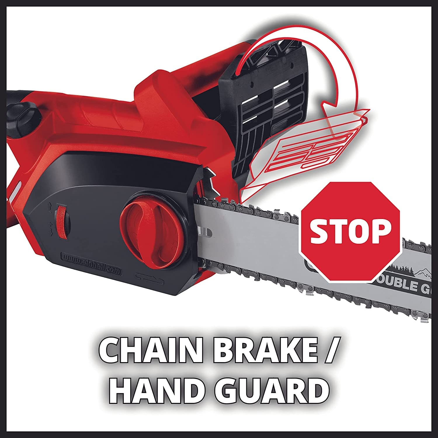La maintenance rapide et simple est un atout majeur pour la tronçonneuse Einhell GH-EC 1835. Elle est dotée d’un système de tension de chaîne latéral qui s’effectue sans outil, grâce à une molette ergonomique. Ce système permet d’ajuster la tension de la chaîne facilement et en toute sécurité, évitant ainsi une usure prématurée et garantissant une coupe toujours efficace. Un tendeur automatique précis améliore aussi la durée de vie de la chaîne et réduit les risques de déraillement.