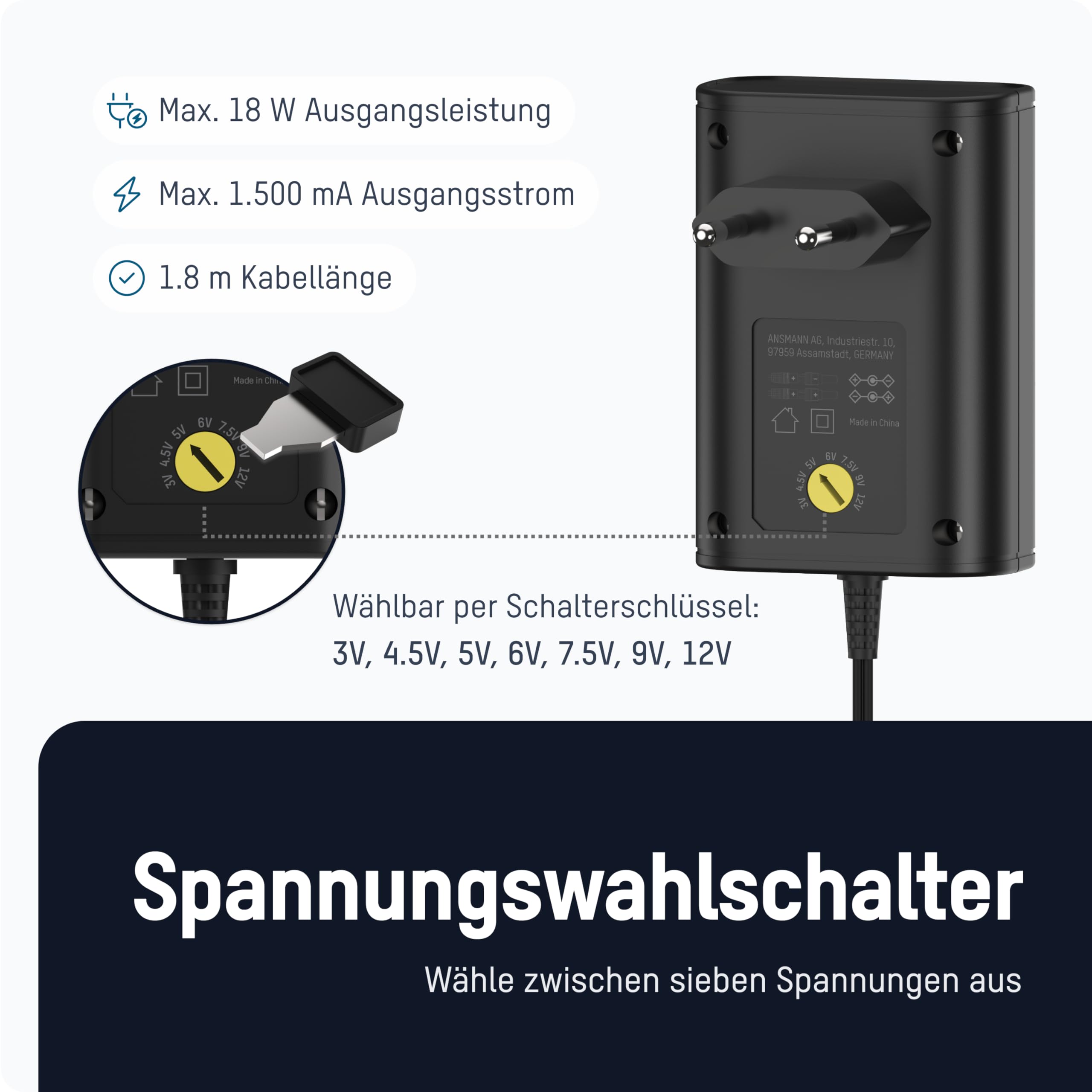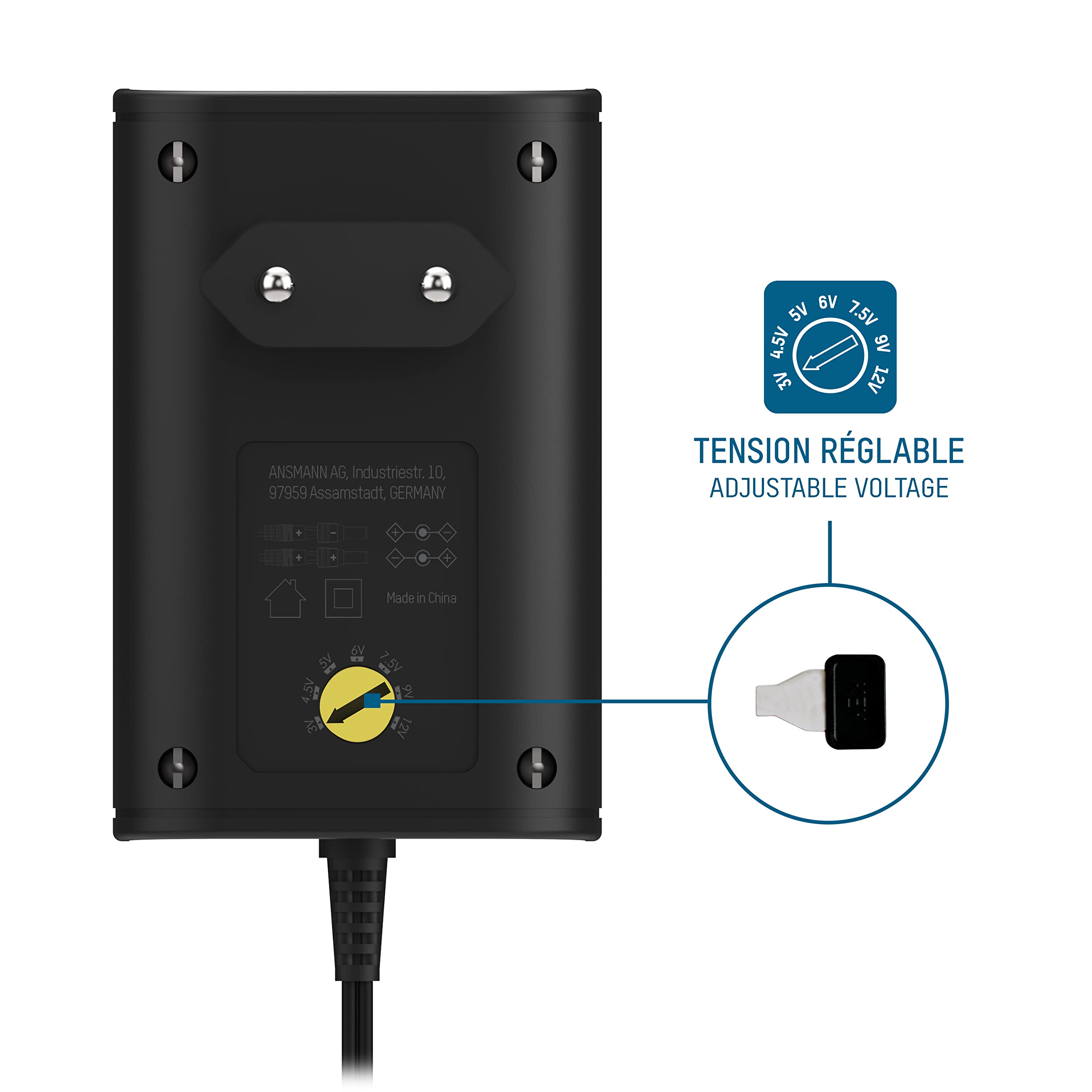 Conçu pour une polyvalence maximale, l'Ansmann APS 1500 Universalnetzteil propose plusieurs sorties ajustables, s'adaptant ainsi à diverses normes et besoins d’alimentation spécifiques. Ces sorties modifiables en voltage et intensité permettent de recharger ou d’alimenter aussi bien des appareils portables que des équipements industriels.