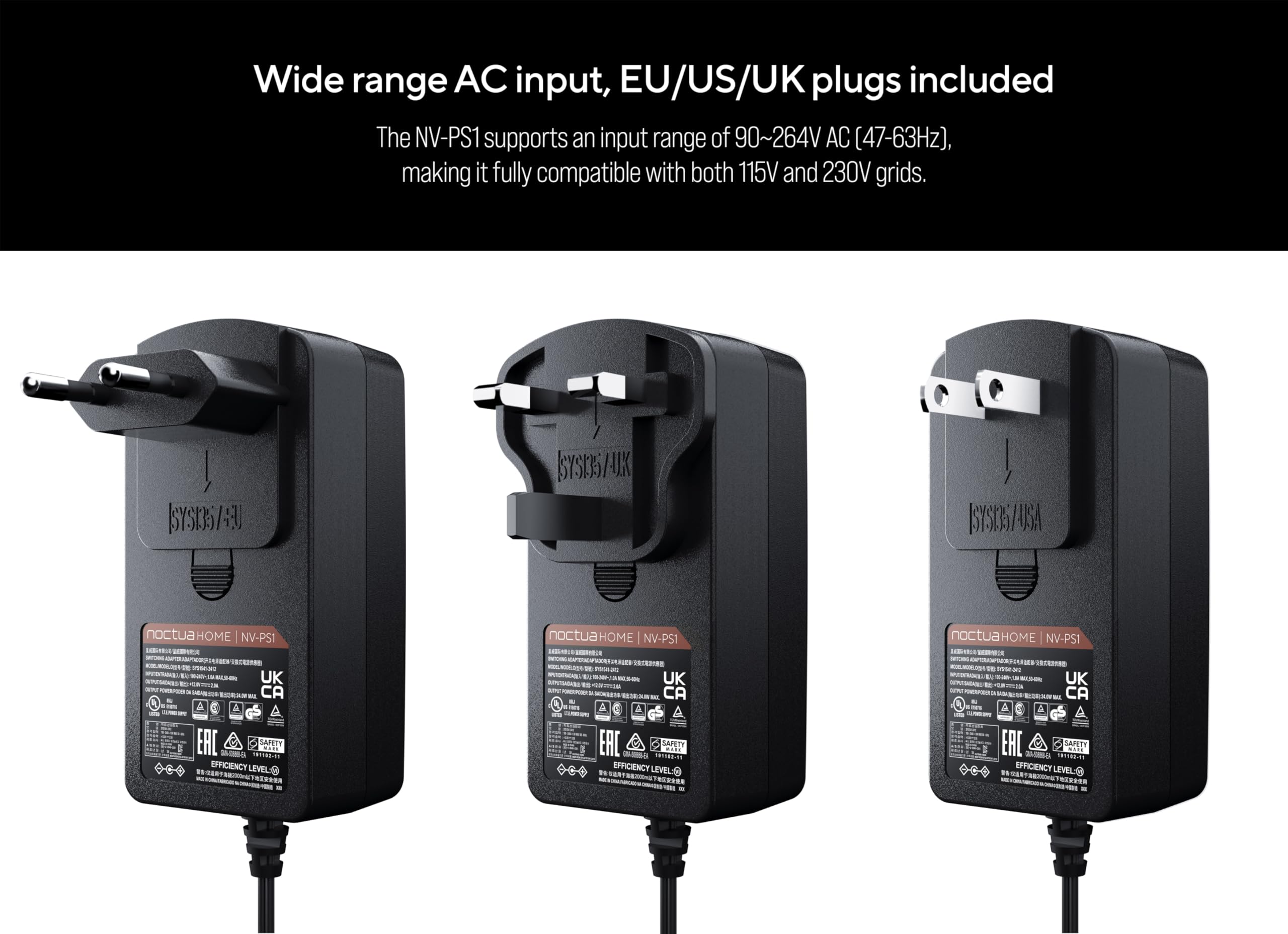 Noctua Alimentation NV-PS1 115V/230V AC vers 12V DC Adaptateur Secteur