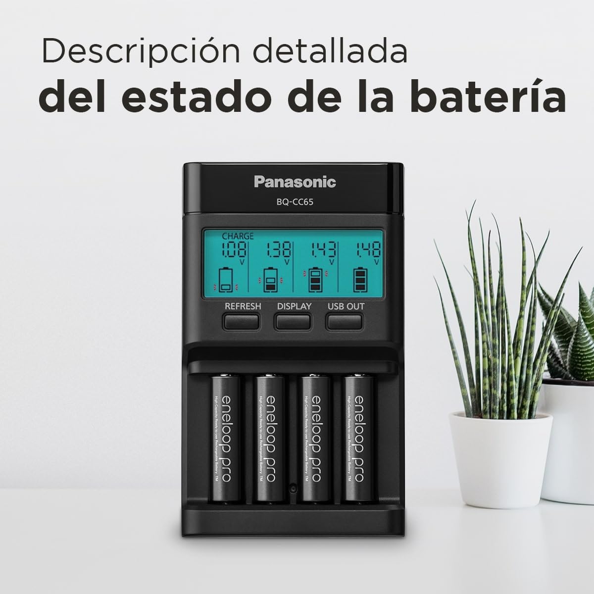 De plus, sa fabrication respectueuse de l’environnement concrétise l’engagement de Panasonic dans des solutions durables et responsables.Panasonic Ladegerät eneloop Universal Smart Charger BQ-CC65E