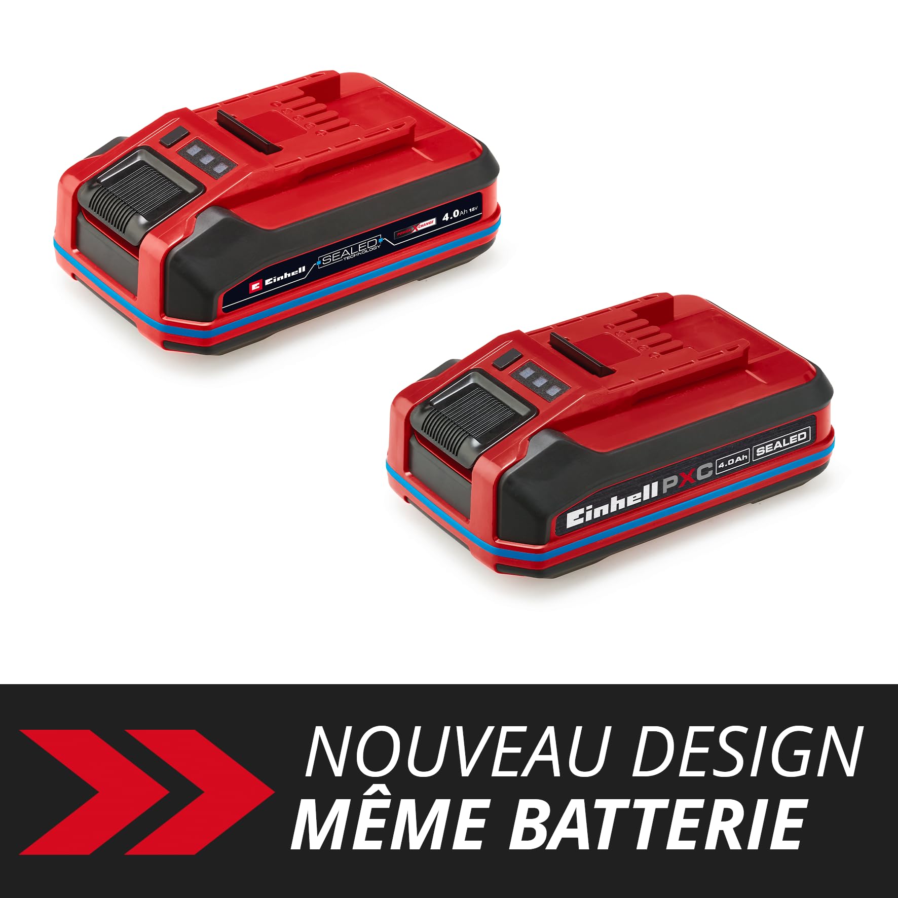 La batterie Einhell Power-X-Change Plus présente un format compact et léger, facilitant sa manipulation et son transport. Son design épuré intègre des indicateurs LED pour visualiser rapidement le niveau de charge restant.