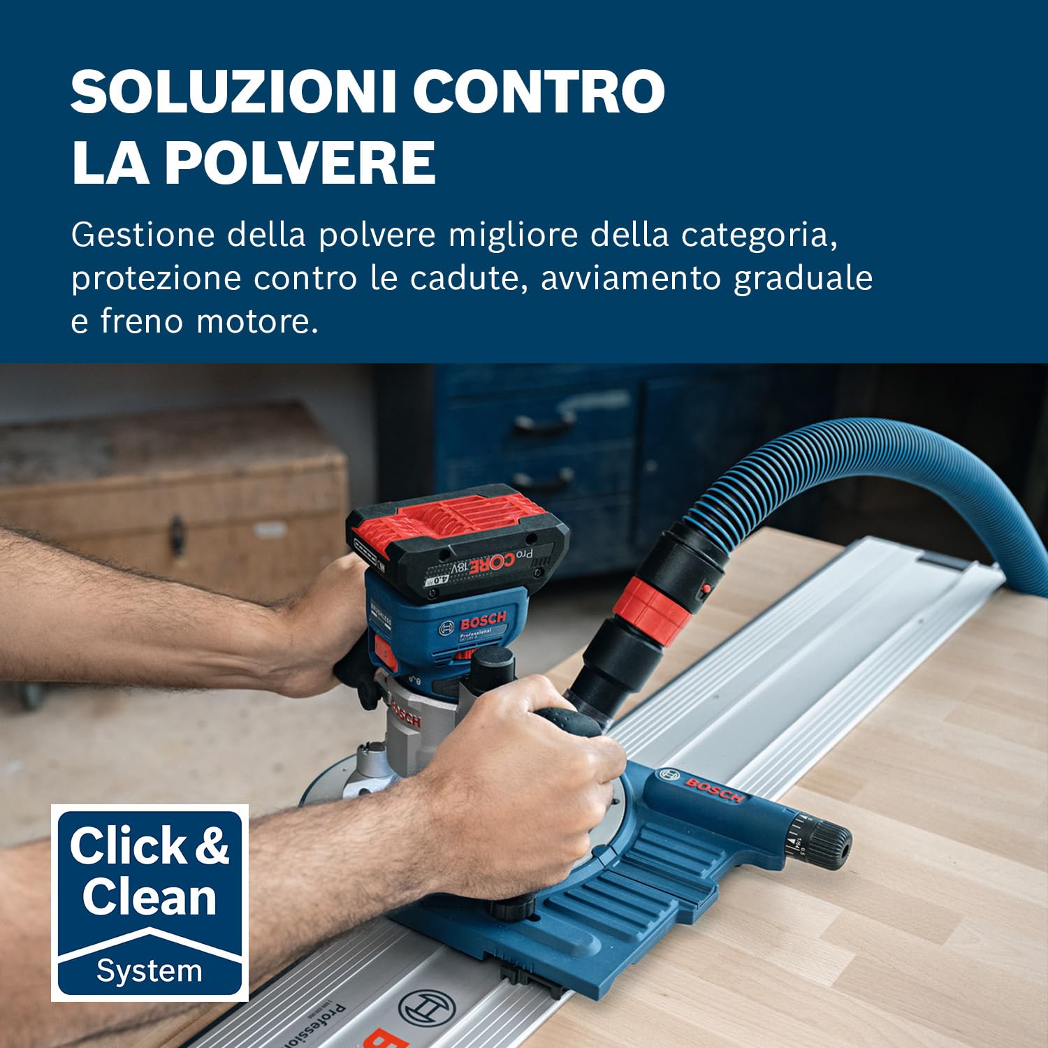 Conçue pour le confort de l’utilisateur, la Bosch Akku-Kantenfräse GKF 18V-8 Professional solo + Taucheinheit présente un design ergonomique alliant légèreté et équilibre. Son format compact et sa poignée spécialement conçue permettent une prise en main sûre et confortable, même lors d’utilisations prolongées. Chaque courbe et chaque position de commande ont été pensées pour réduire la fatigue et faciliter l’orientation pendant le travail. La distribution optimisée du poids assure une manutention sans effort, et la stabilité du dispositif permet d’atteindre des résultats précis, quels que soient les angles ou la nature des surfaces à travailler. Cet équilibre subtil entre robustesse et légèreté fait de cet outil un choix privilégié dans les ateliers professionnels.