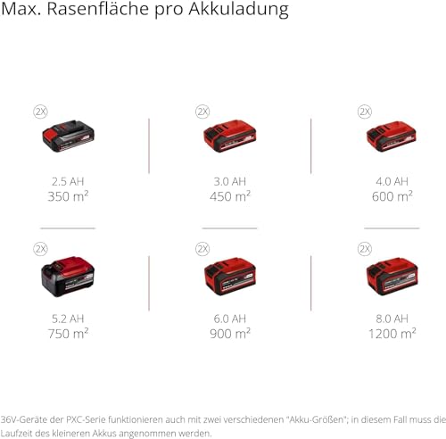 L’Einhell Akku-Rasenmäher GE-CM 36/43 Li M - Solo fonctionne avec une tension combinée de 36 Volt, issue de deux batteries lithium-ion de 18 V chacune. Cette configuration double batterie assure une puissance stable, permettant une coupe nette et efficace sur des surfaces moyennes à grandes. Grâce à cette technologie, la tonte reste homogène, même sur des herbes denses ou humides.