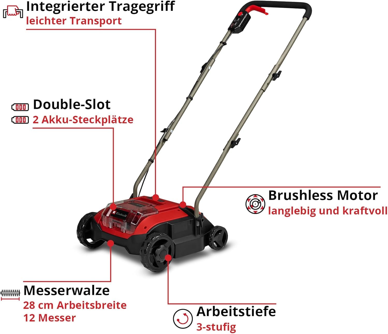 Einhell Power X-Change Akku-Vertikutierer-Lüfter GC-SC 18/28 DS Li-Solo