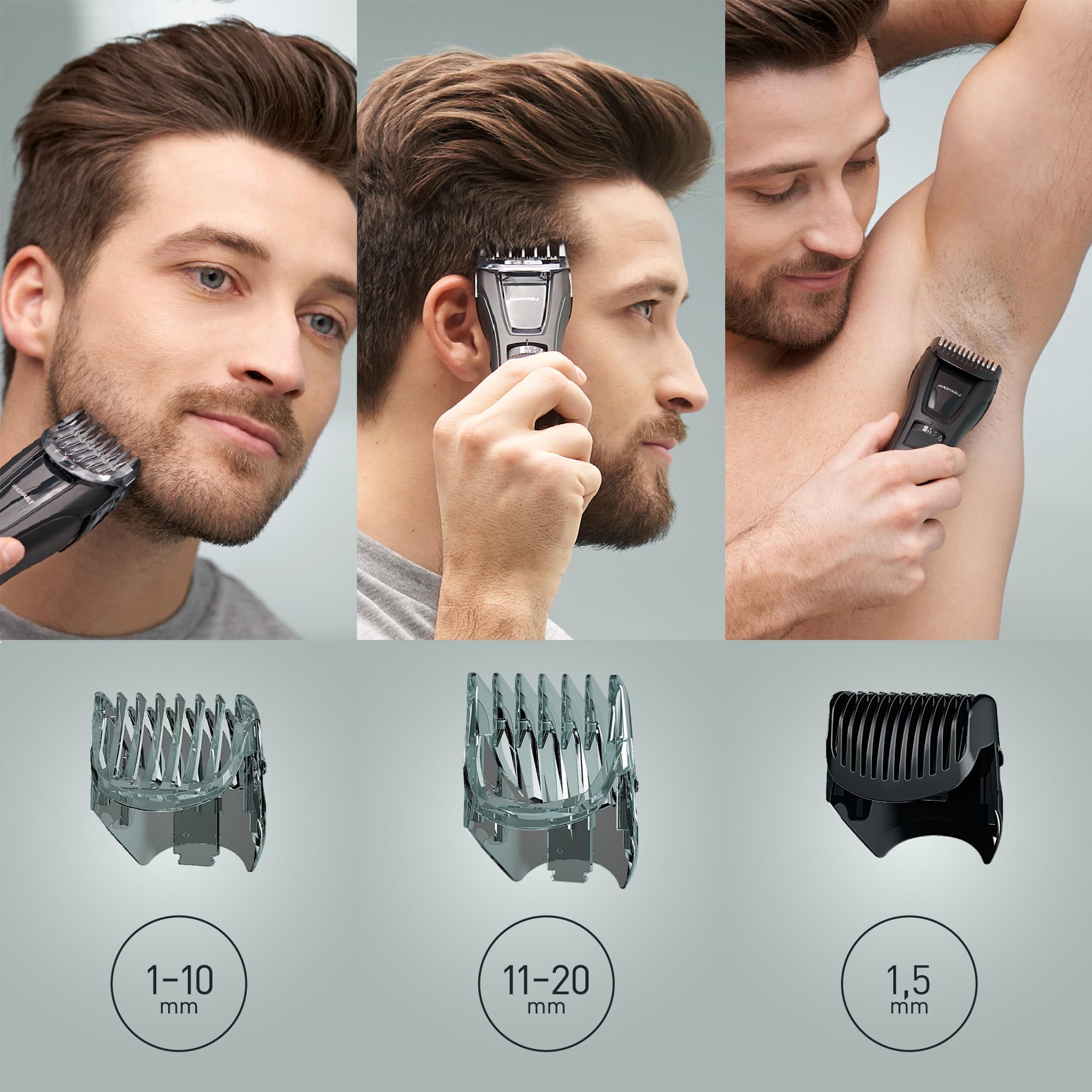 La tondeuse intègre une molette de réglage fine qui propose jusqu’à 39 positions différentes, ajustant la hauteur de coupe entre 0,5 mm et 20 mm. Cette grande amplitude permet d’adapter parfaitement la tonte à toutes les envies, allant d’un rasage très court à une barbe de style dégradé. Chaque cran est facilement sélectionnable, assurant une grande flexibilité et un contrôle optimal sur la taille des poils. Ce système fait de l’ER-GB61-K503 un outil polyvalent très apprécié des utilisateurs exigeants.
