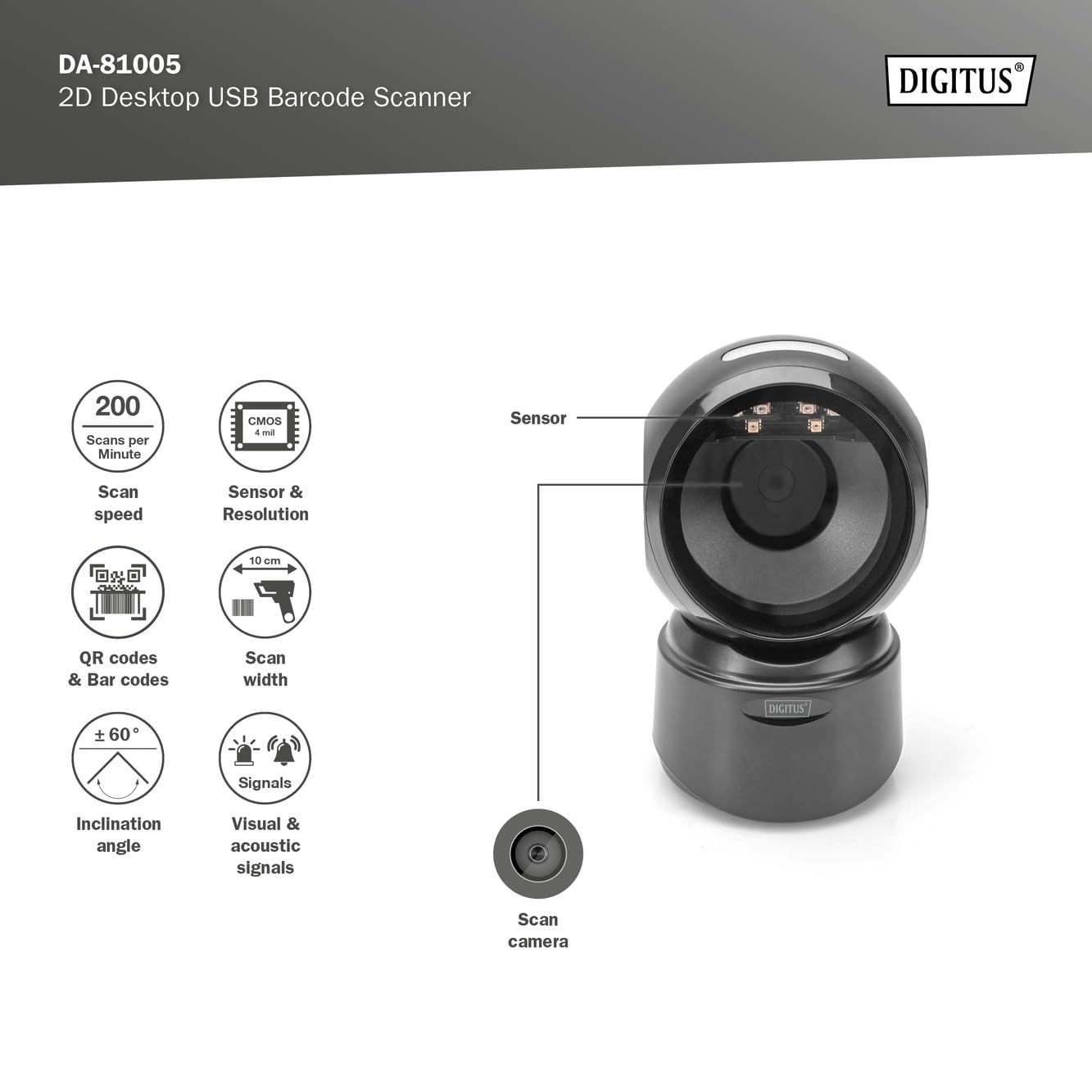 Équipé d’un moteur de décodage puissant, ce lecteur de codes-barres DIGITUS traite les données à une vitesse exceptionnelle, accélérant les flux de travail.