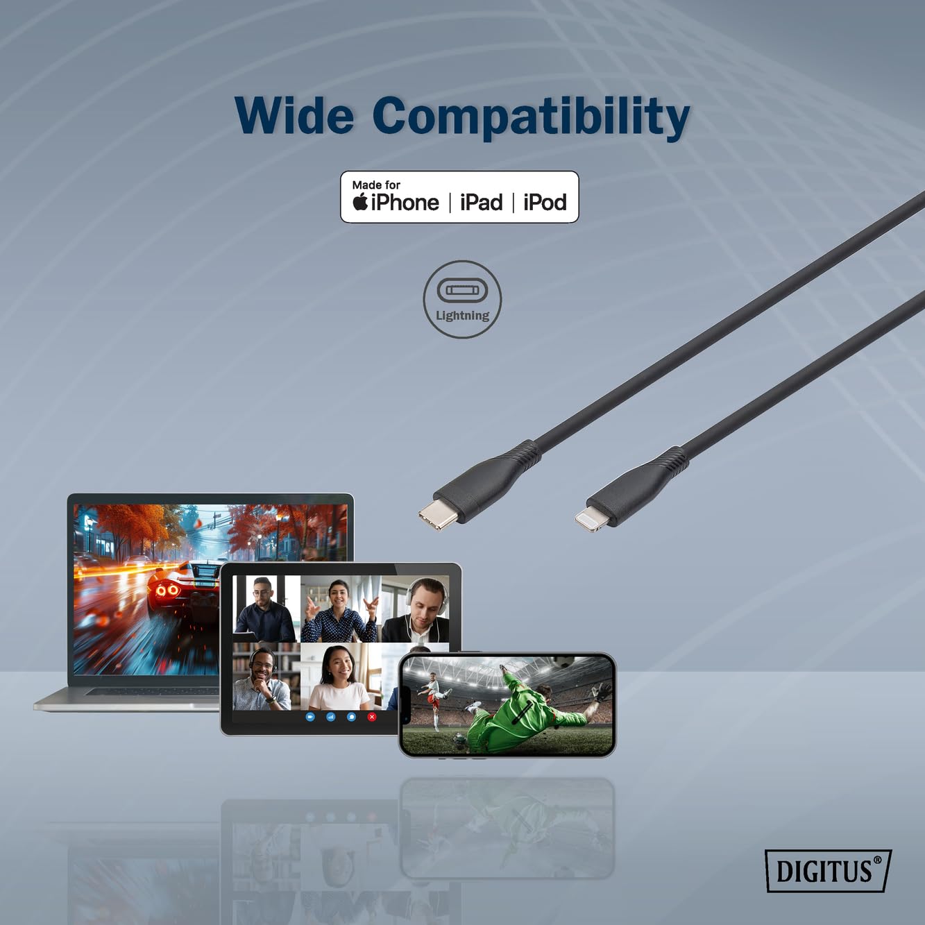 DIGITUS DIGITUS USB 2.0 Kabel Typ C-Lightning Silikon 0,5m MFI schwa