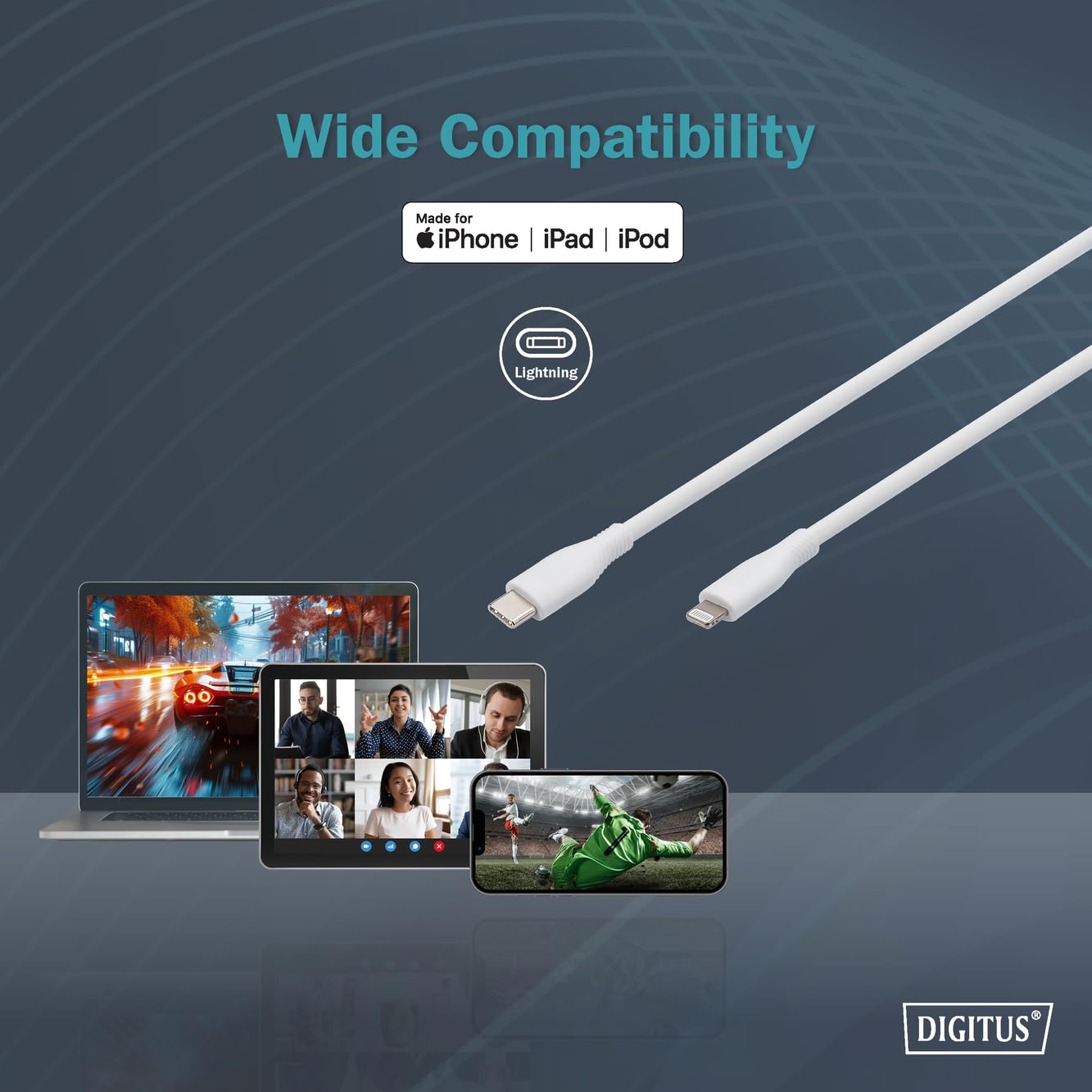 Le câble DIGITUS USB 2.0 Typ C vers Lightning bénéficie de la certification officielle Apple MFi (Made for iPhone/iPad).