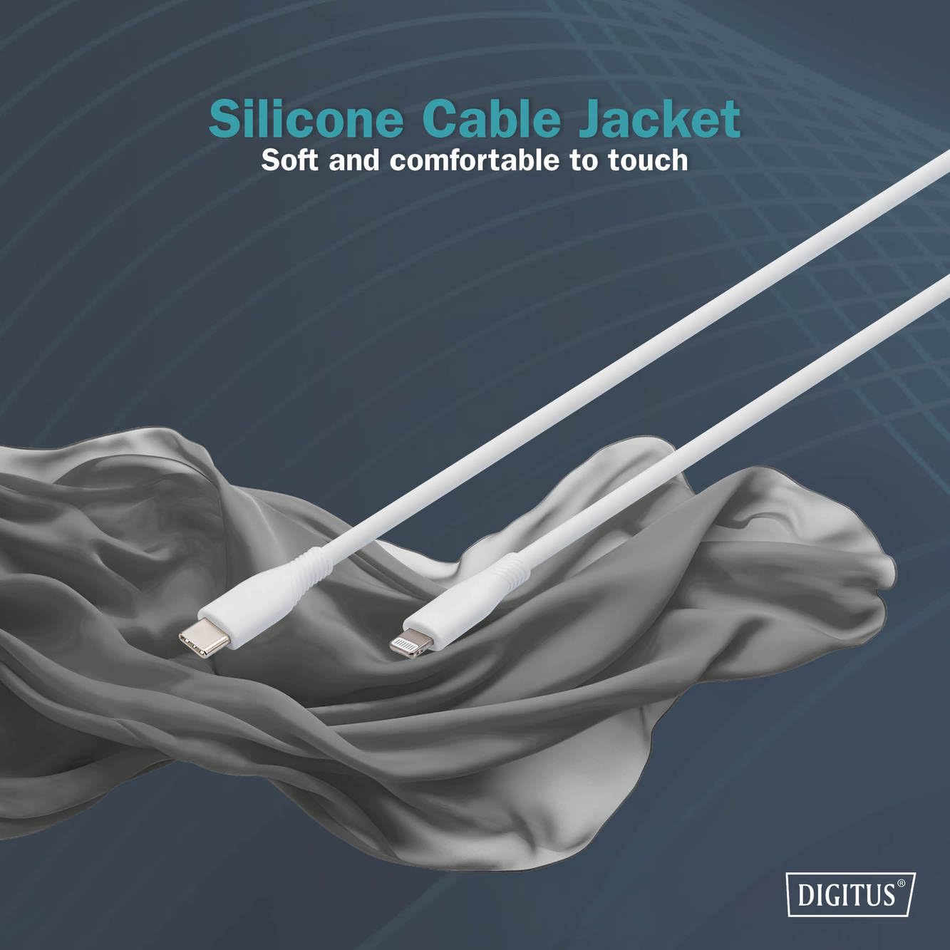 Le câble DIGITUS se distingue par son revêtement en silicone blanc, particulièrement doux au toucher.