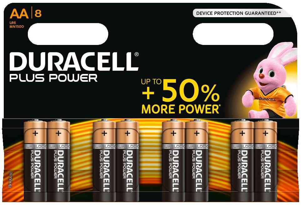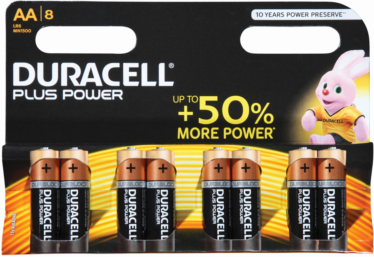 - Lot de 8 piles alcalines AA Duracell Plus Power