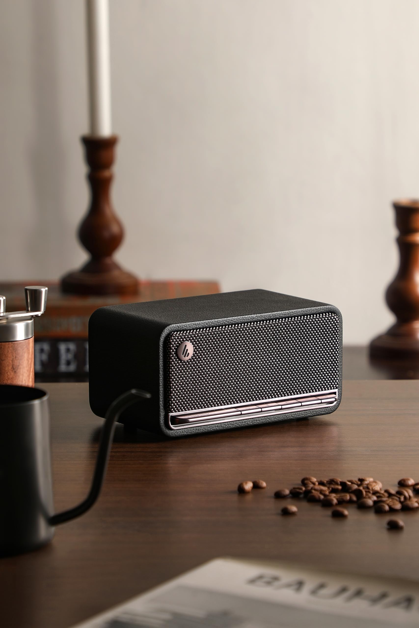 L’enceinte Edifier MP230 2.0 retro-schwarz Bluetooth incarne parfaitement l’esthétique vintage. Son look rétro noir mat s’inspire des radios classiques des années 60, avec des lignes douces et une grille textile sur les haut-parleurs. Cette finition élégante ajoute une touche d’authenticité et de charme intemporel à tout intérieur, que ce soit un bureau, un salon ou une chambre. Offrir un son moderne dans un écrin au style rétro est la promesse de l’Edifier MP230.